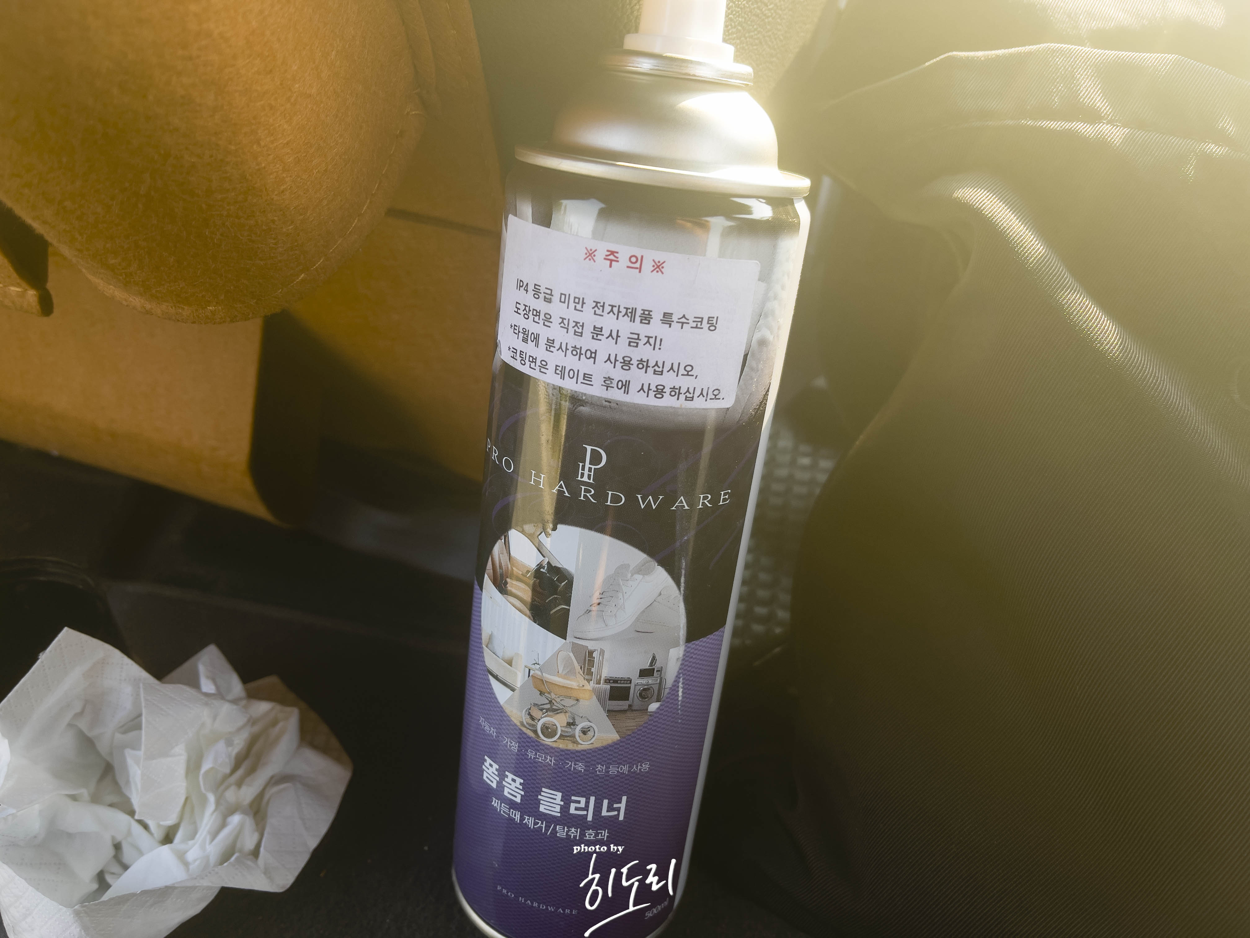 그리고 시트 세척에도 탁월하다고 해서 시트에도 분사~