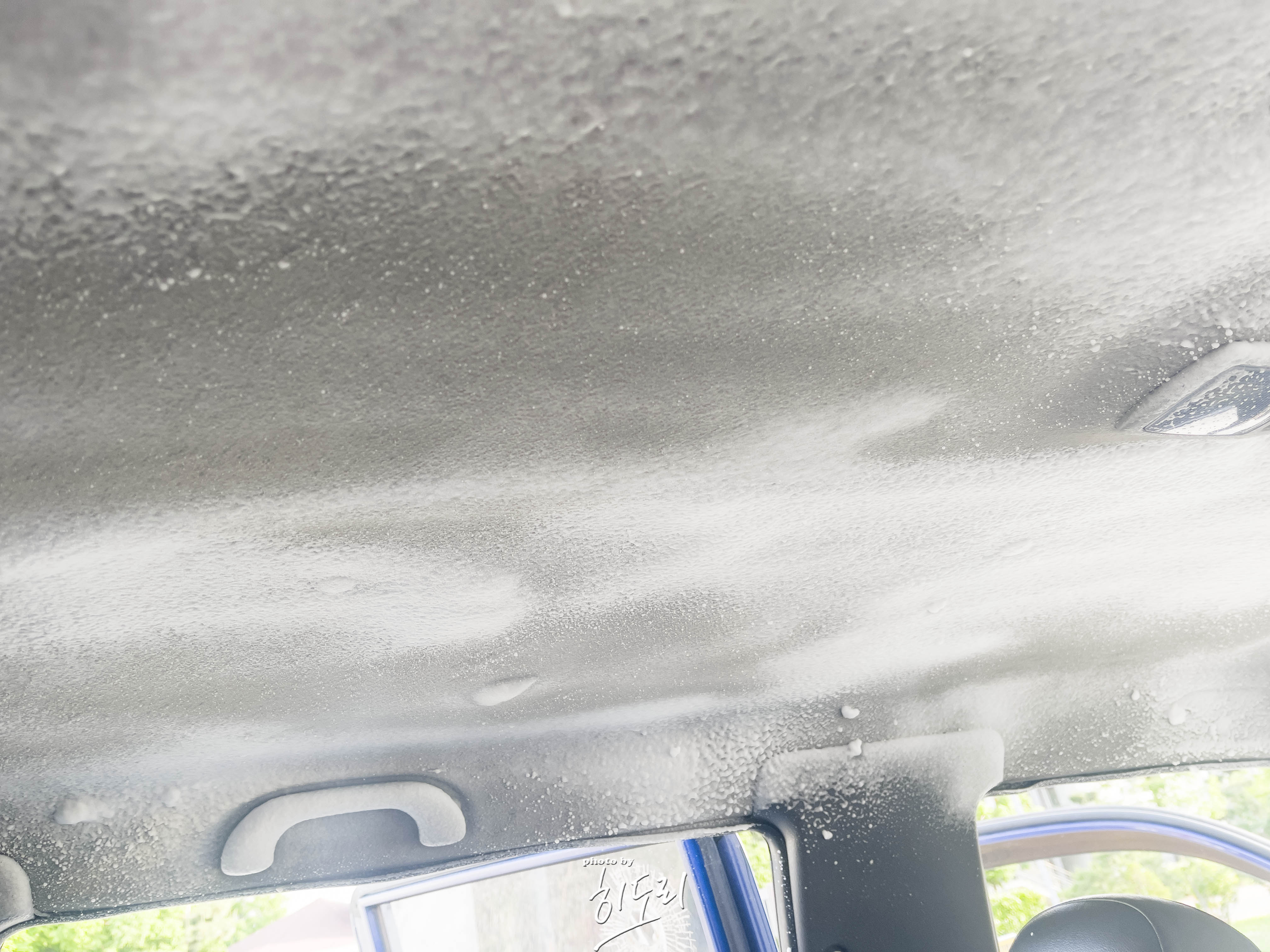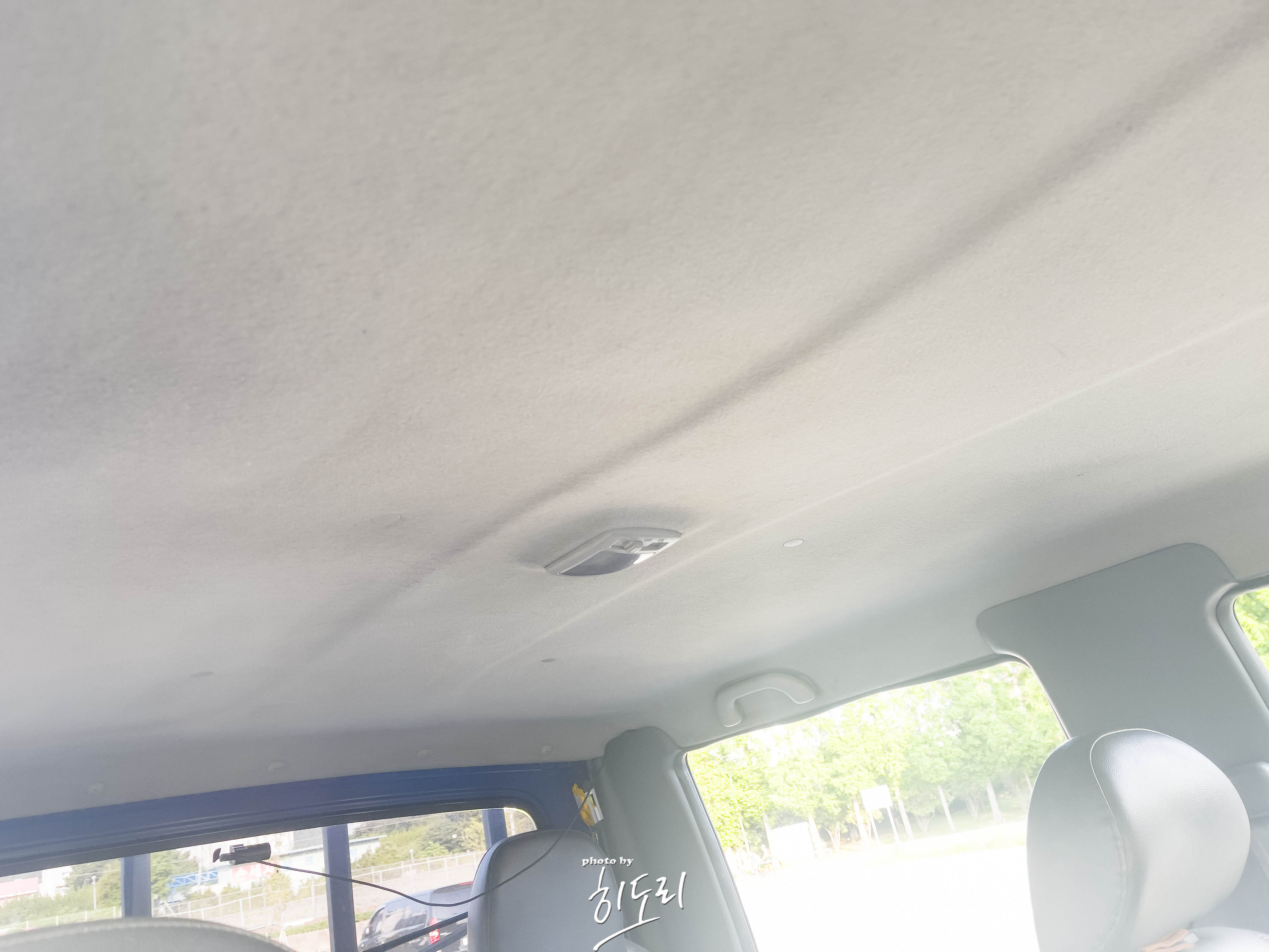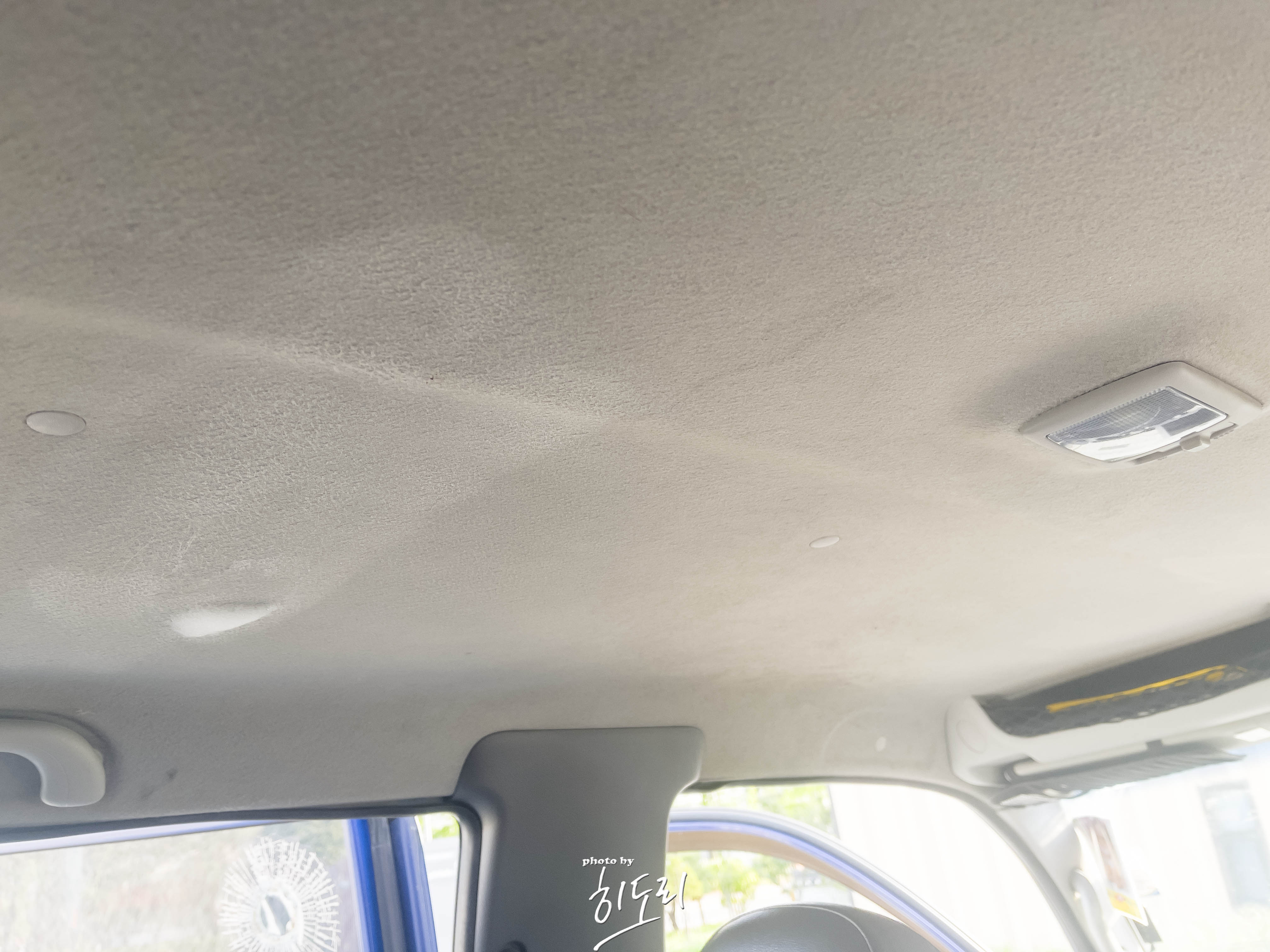 연초를 피는차량은 아니라서 담배연기 얼룩은 없지만 그래도 세월의 흔적... 천장에 때가 듬뿍 있어서 폼폼클리너를 자동차 천장에 분사~