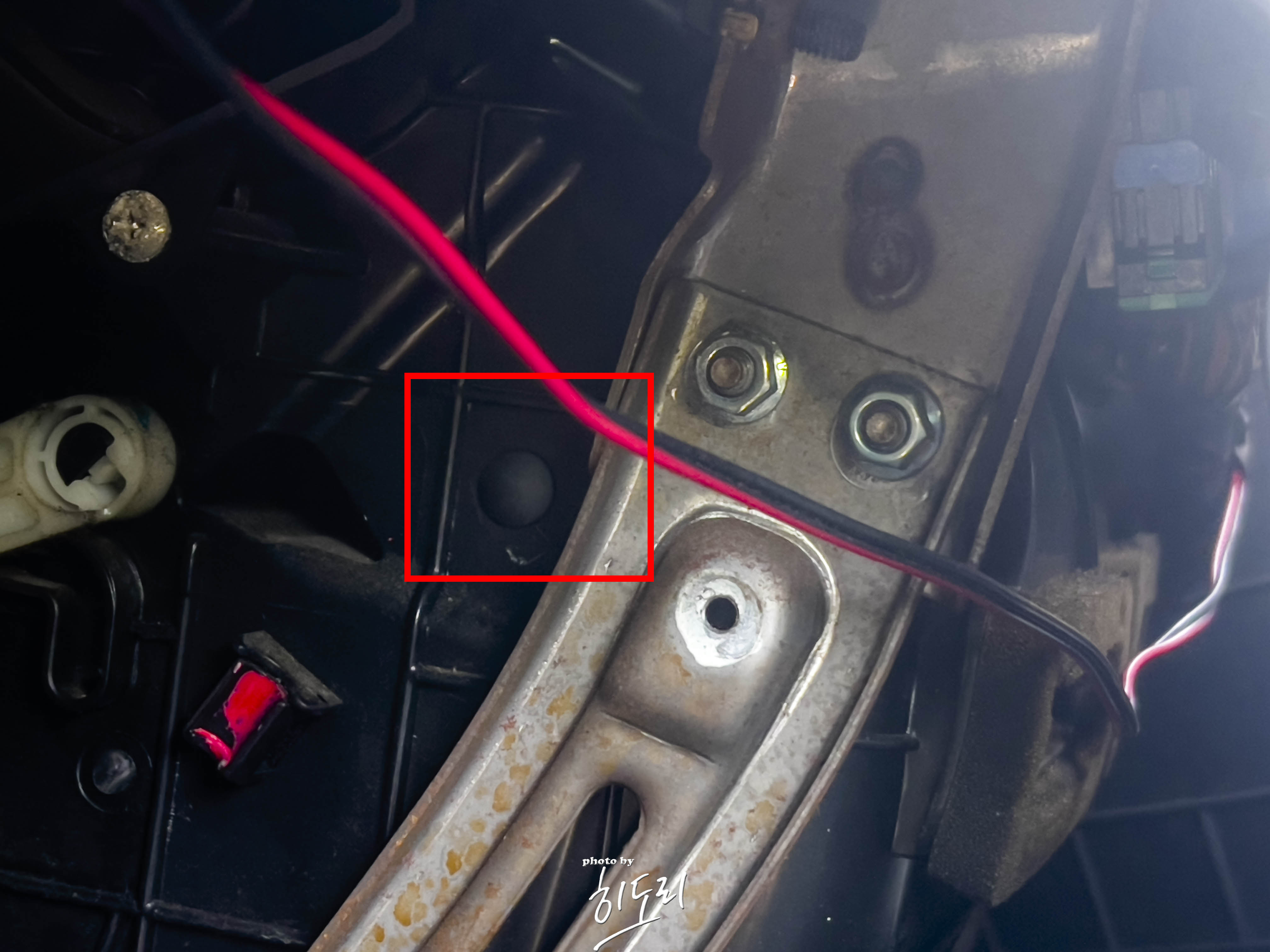 봉고3의 에바 타공 위치는 운전석에서 바라봤을때 저정도쯤 타공을 하시면 됩니다.