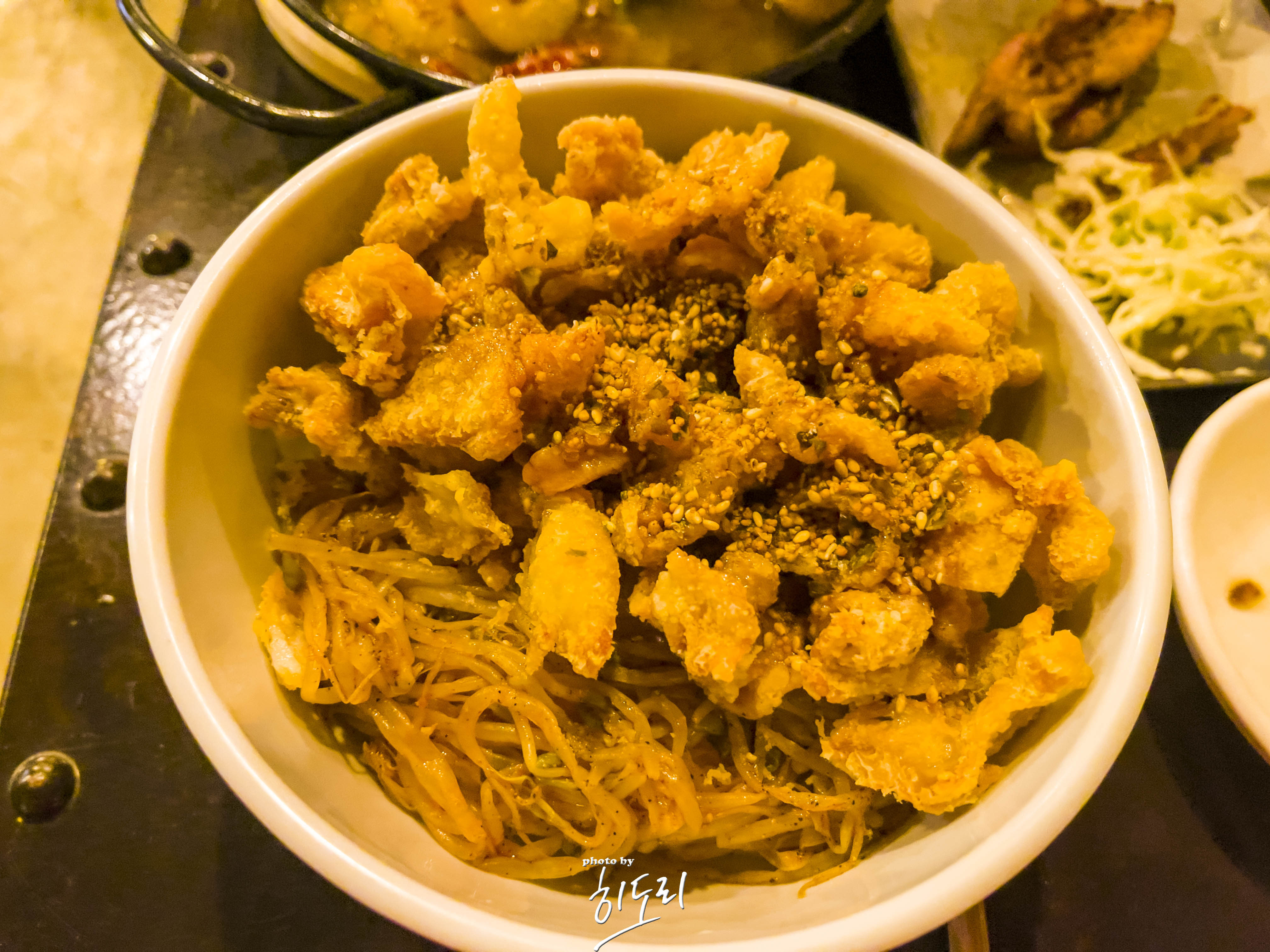 살짝 배가 고파서 닭껍질 튀김덮밥을 먹었는데~ 닭껍질 튀김은 바삭바삭 괜찮은데 덮밥안의 난생 처음 먹어보는 향신료가 저는 개인적으로 불호!!!