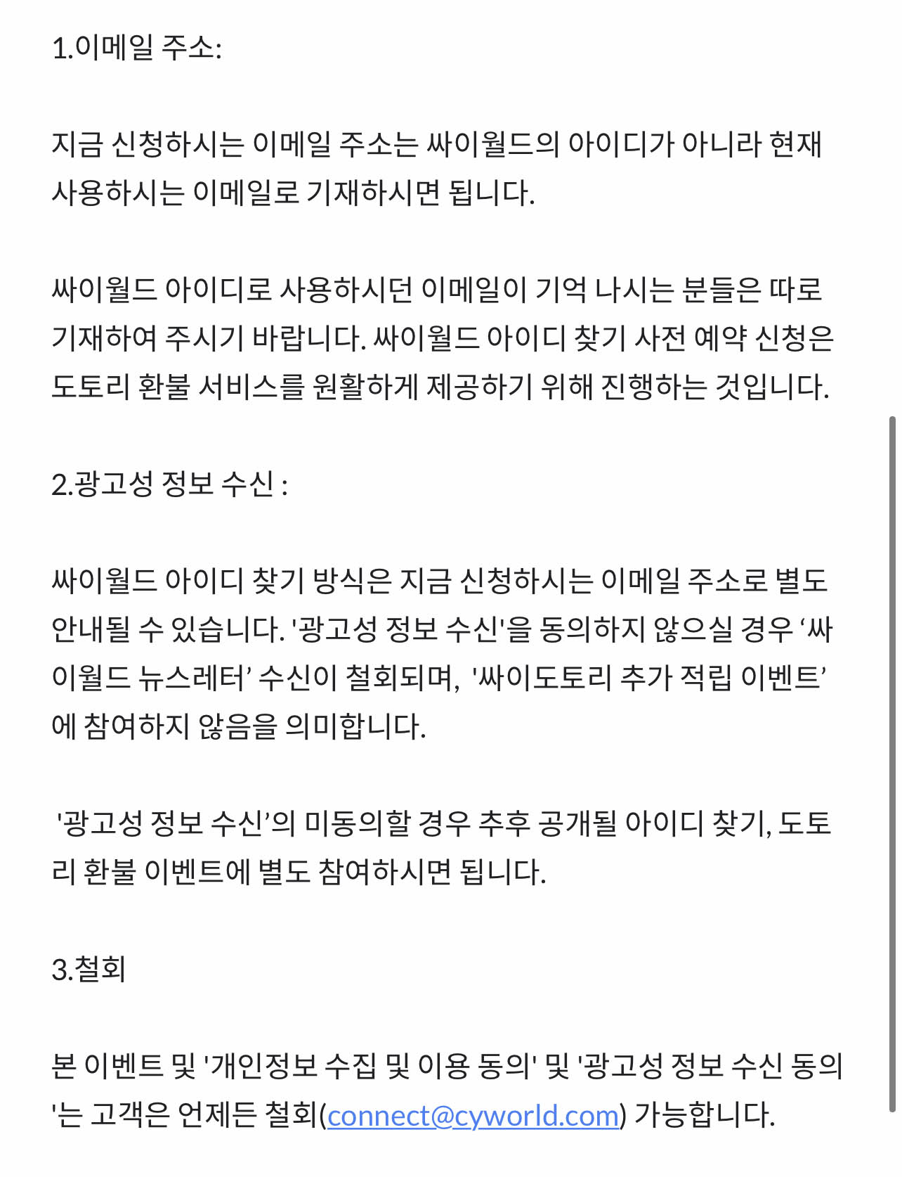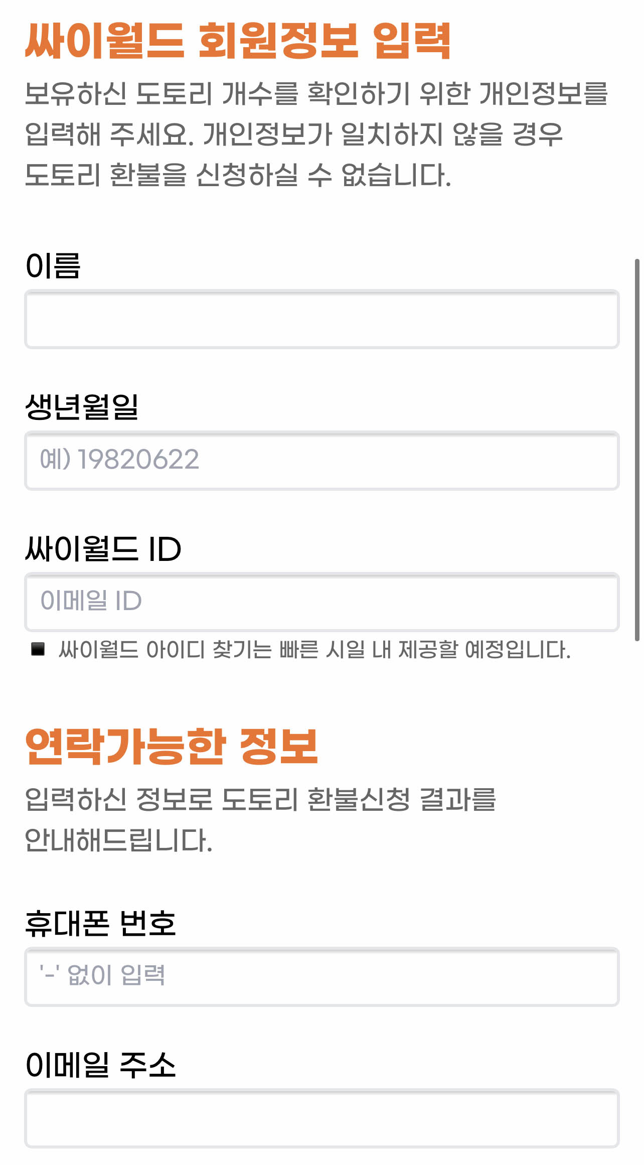 이름과 생년월일 그리고 싸이월드 ID가 필요하죠.