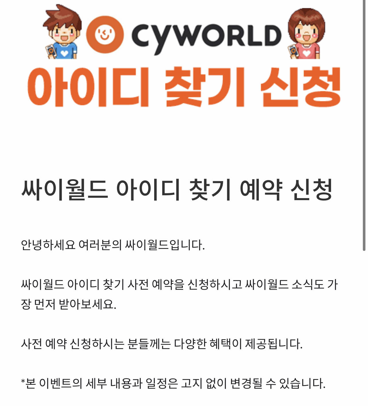 아무튼 현재는 싸이월드 아이디 찾기 예약신청을 하고 있습니다.