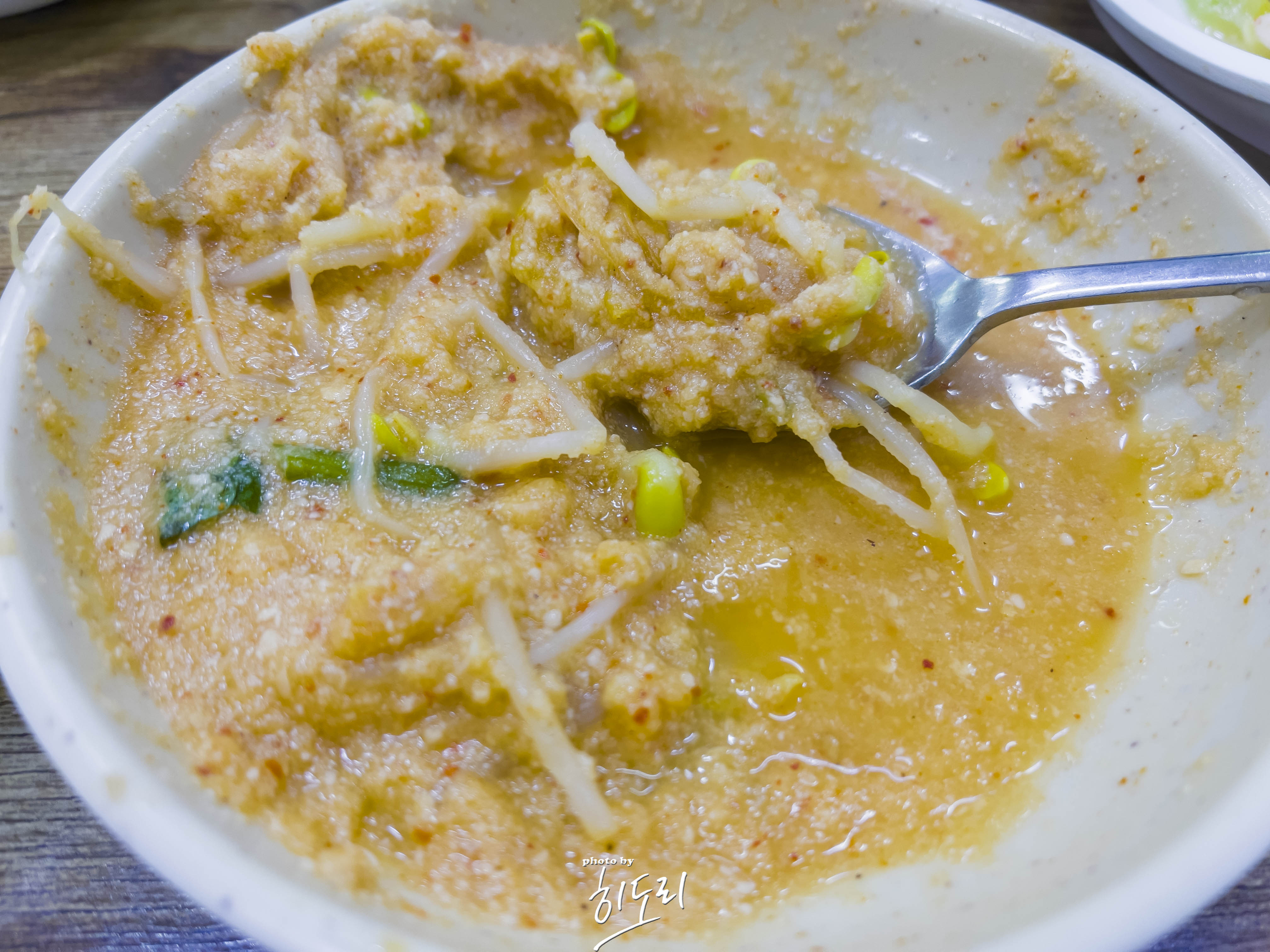 콩나물과 고기가 살짝들어간 비지... 식감도 정말 좋고~ 살짝 칼칼한것이~