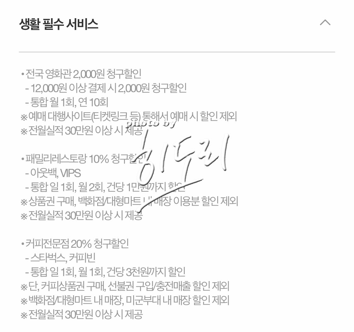 생활필수서비스인 극장,카페가 있긴 한데 이역시 다른카드가 더 혜자급이라서 안쓰게 되네요.