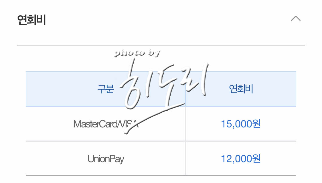 연회비 15000원 마스터카드로 발급받았습니다.