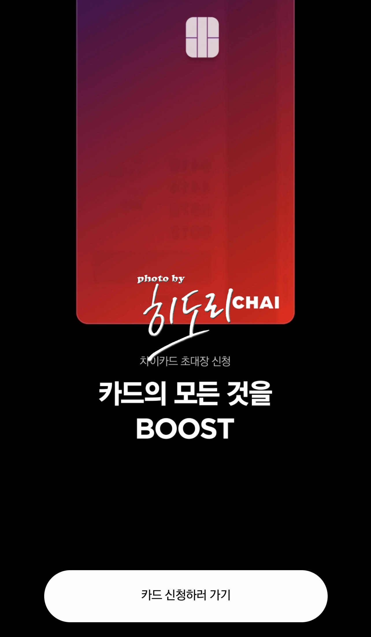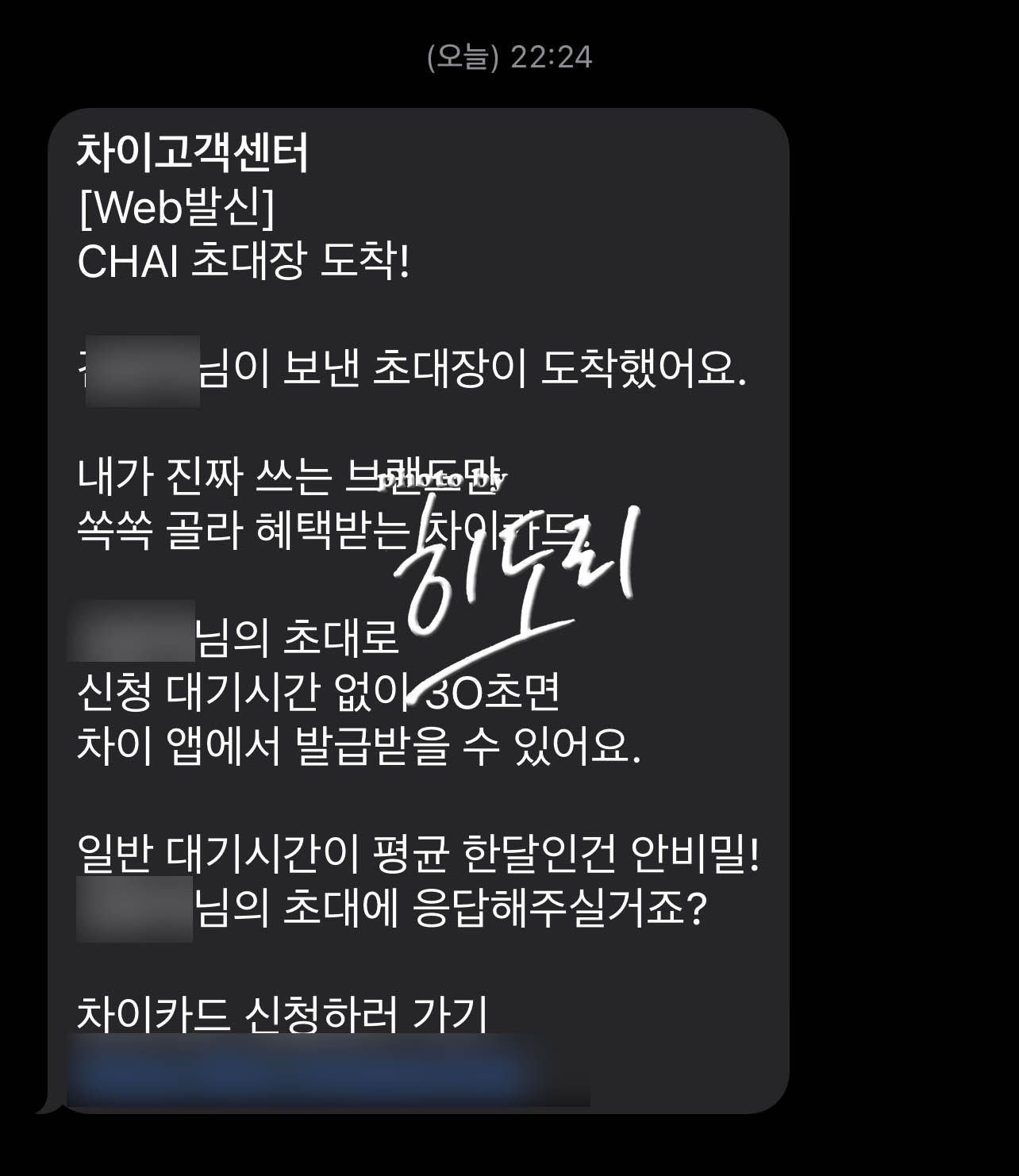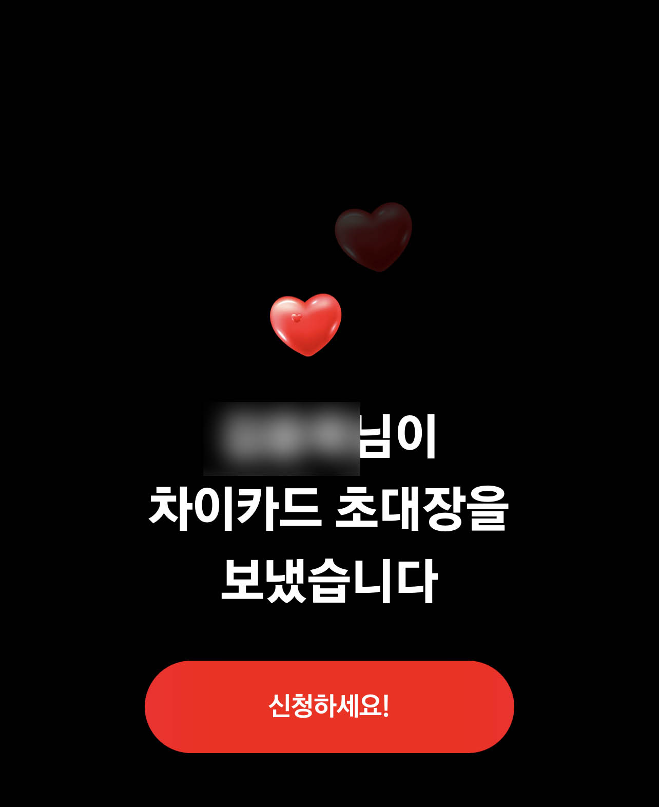 차이카드 게시물을 SNS나 메신저에 공유해 카드사로부터 초대받는 방법이 있습니다만 시간이 걸리고 번거로워 일반적으로 초대장을 얻어 발급하는것이 가장 완벽한 방법!