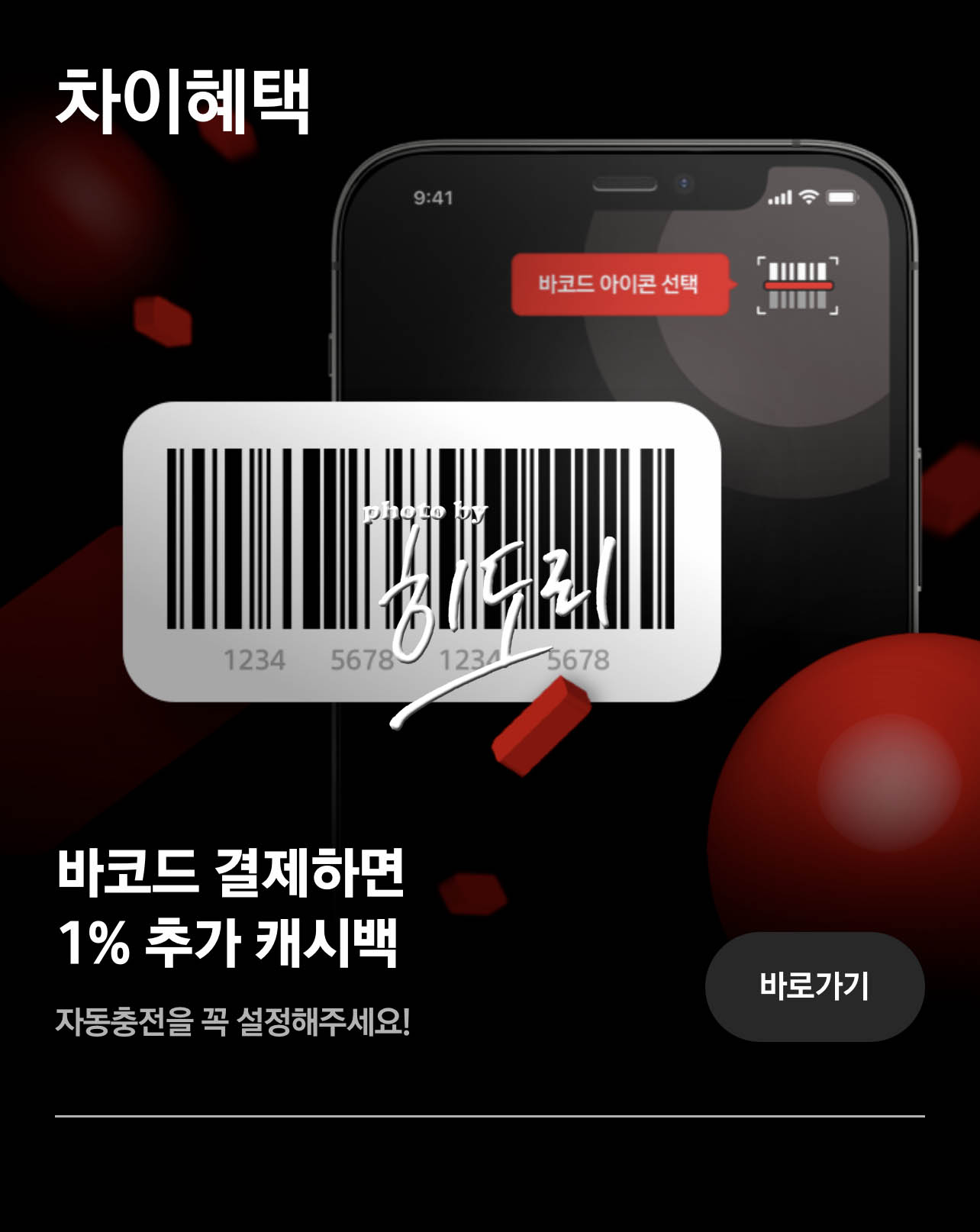 스마트폰 어플을 설치하시고 차이를 등록하면 굳이 카드 없이도 사용이 가능합니다만~ 바코드결제는 안되는 매장도 많이 있기에 차이카드가 주력카드가 된다면 무조건 카드 발급 고고~