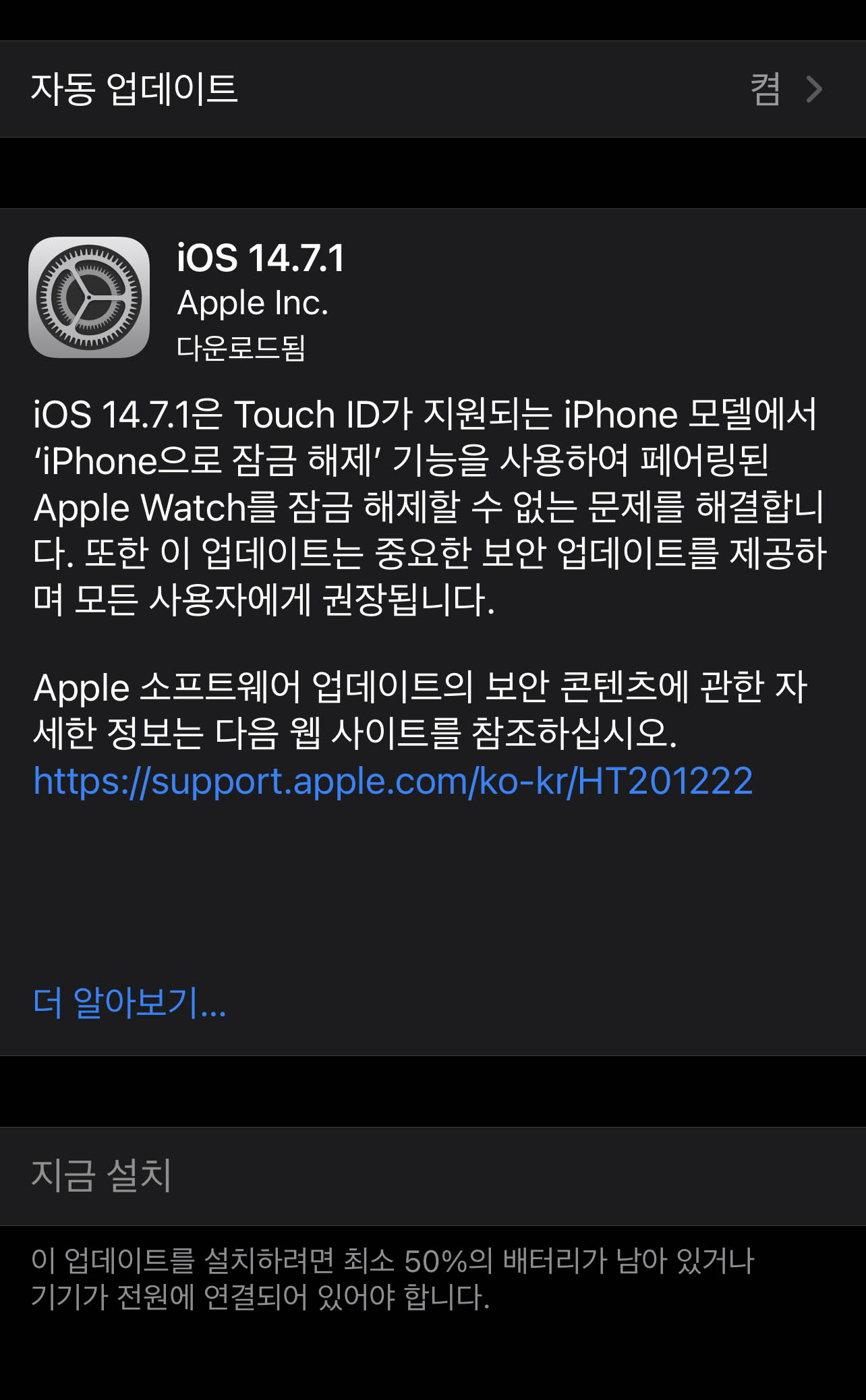 이번 버전은 iOS 14.7.1로 지난 7월 27일에 공개가 되었습니다.