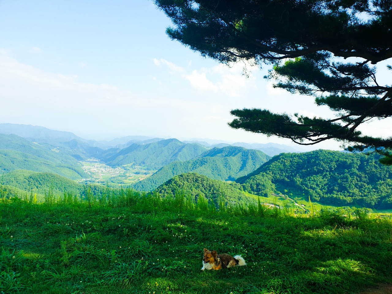 양달소나무 아래에서 열심히 경치를 보고 잠시 휴식을 취하는 동안... 멍뭉이도 여기 도착하면 사람들이 멍때리며 풍경을 하염없이 몇십분간 보는것을 아는지 그냥 앉아서 쉬고 있습니다.