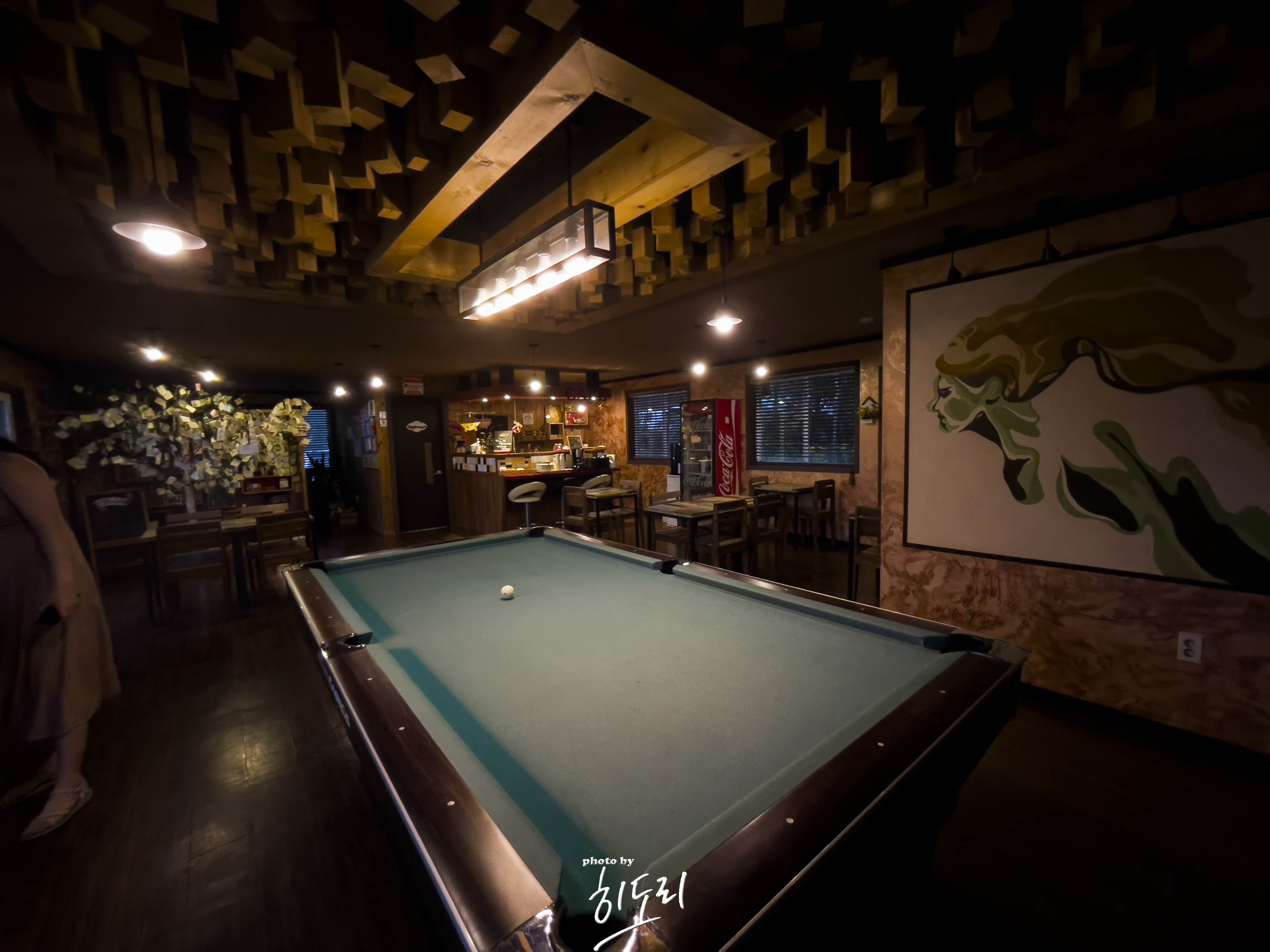 본관에는 당구대도 있고 아침 조식을 제공하기에 식당테이블등 각종 놀거리 있습니다.
