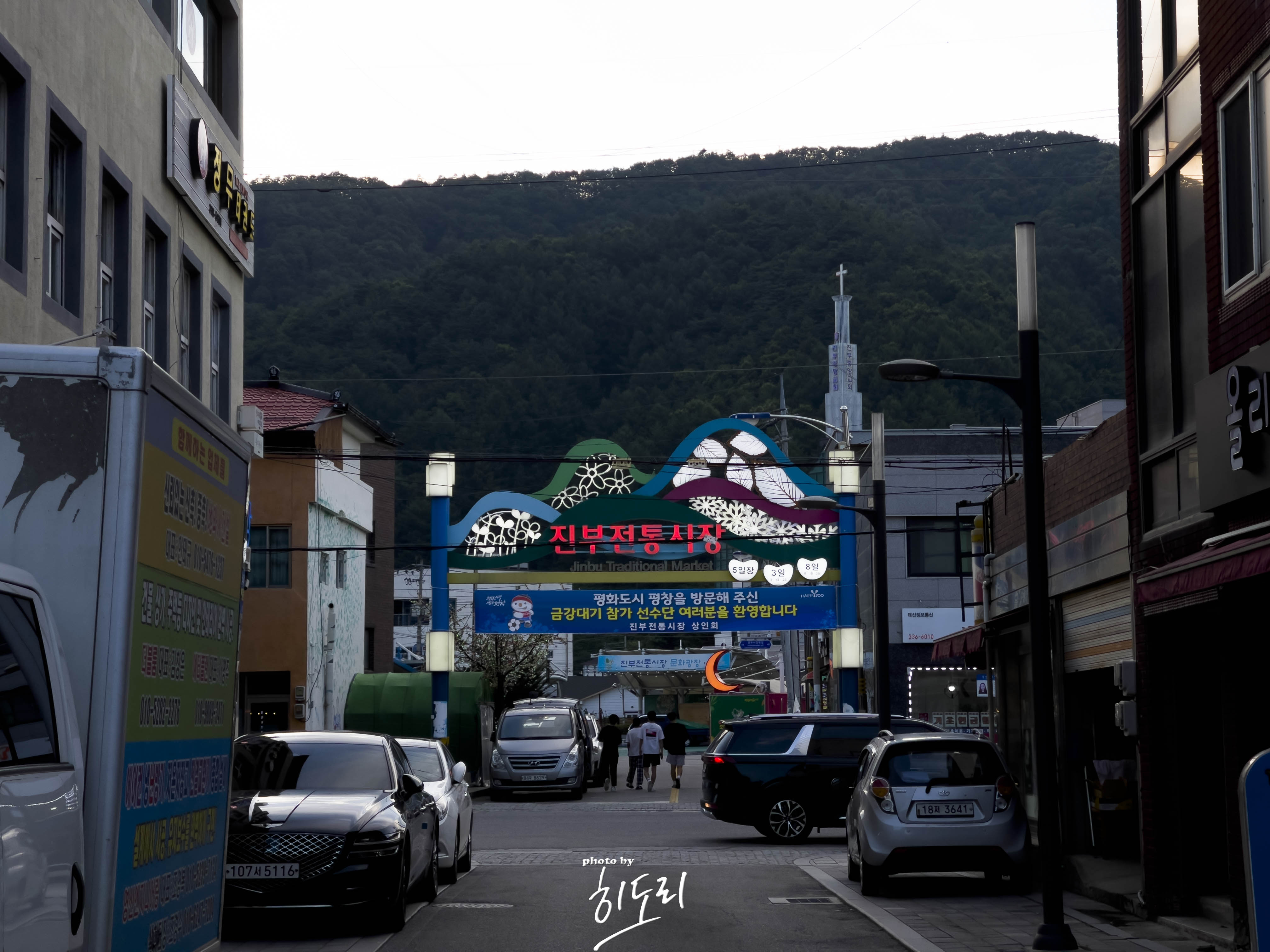 그런데 다행히도 숙소로 가는길 '진부전통시장'이라는 읍내가 나와서 근처 하나로마트에서 고기랑 간식거리를 구입하기로 했습니다.