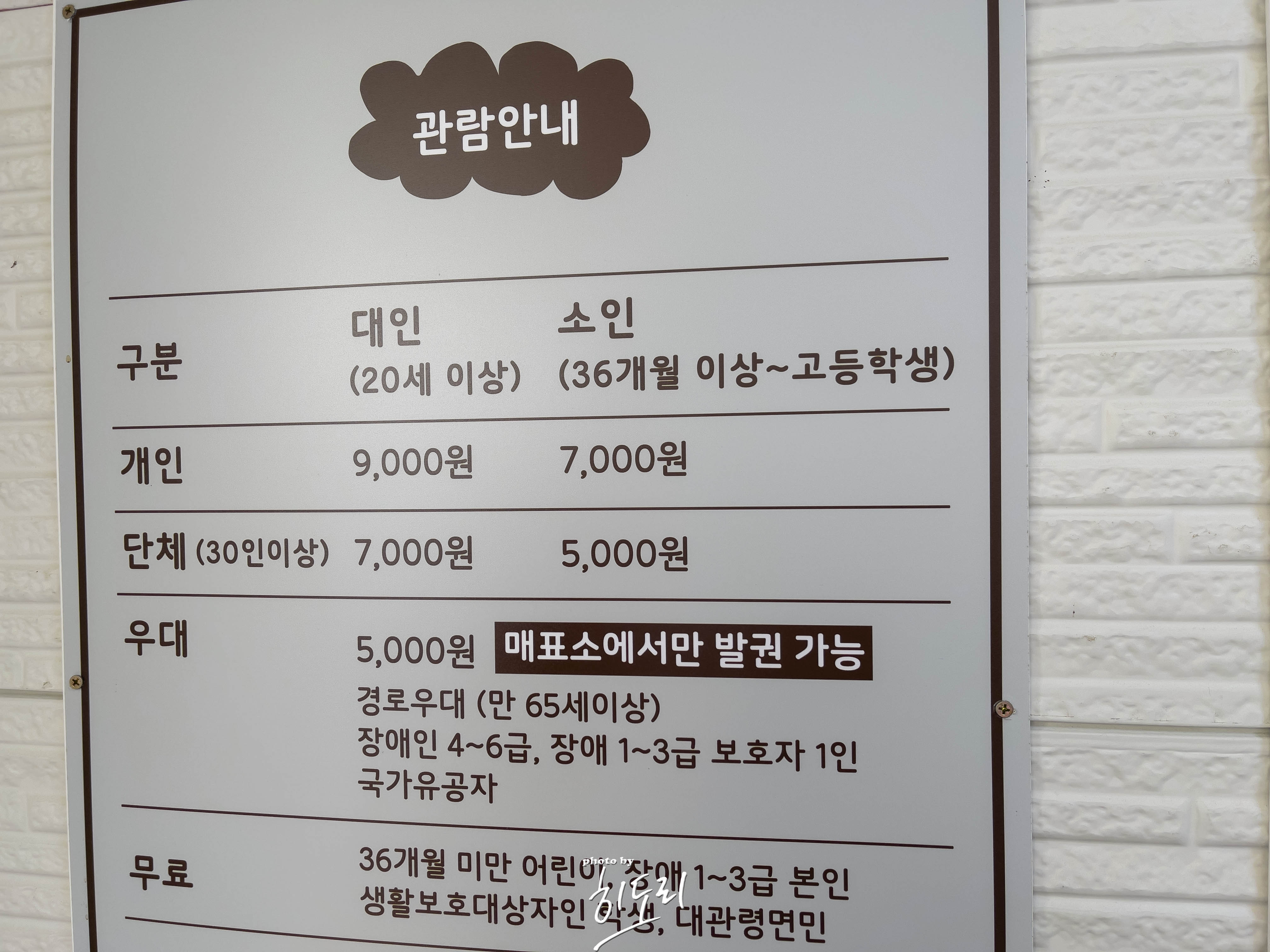 입장료는 성인 9000원 고등학생까지 소인 7000원 입니다.
