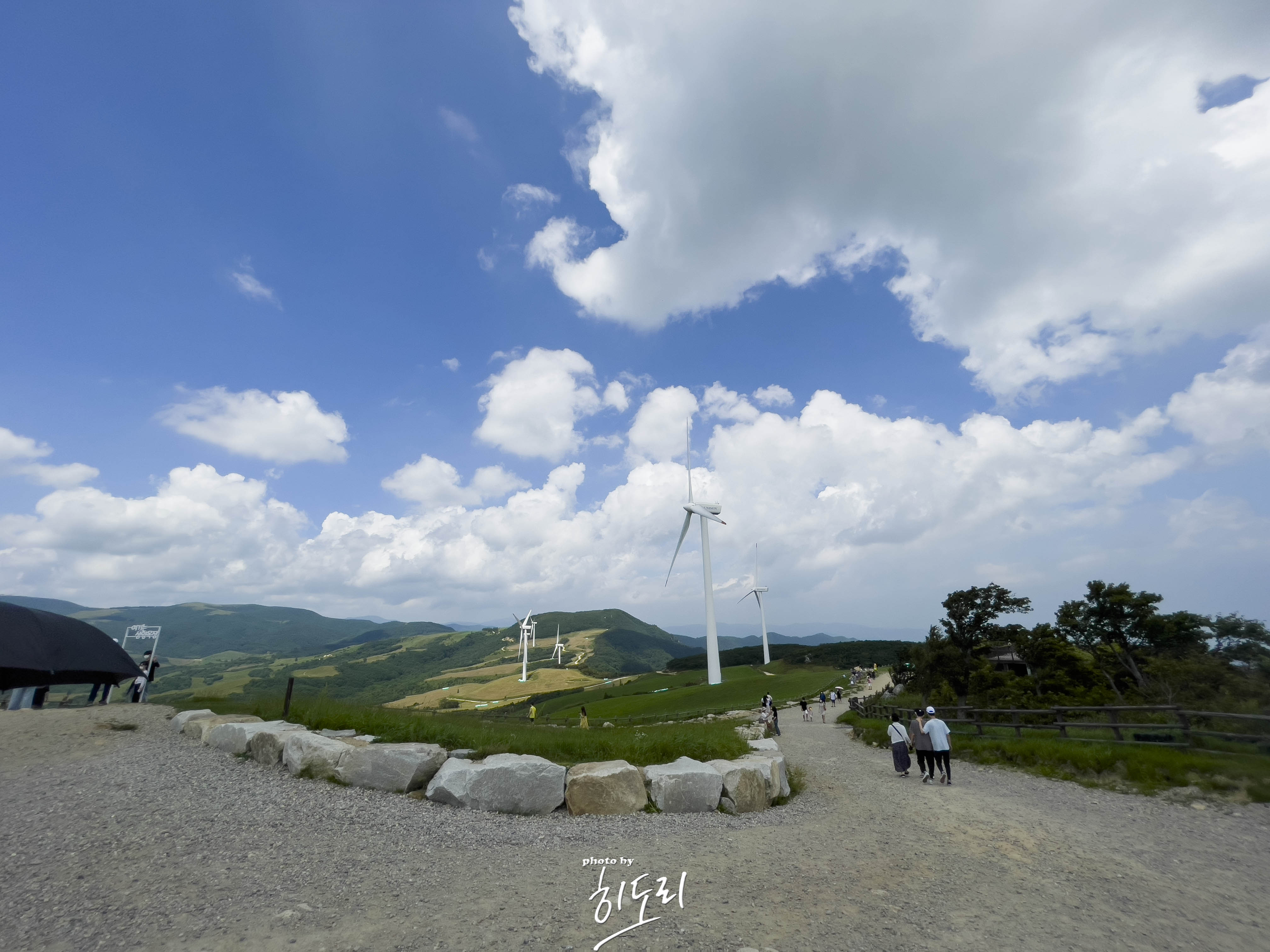 고산지대에서 시원한 바람이 쉬지 않고 불어오는 덕분에 풍력발전기가 엄청 많이 보이는데~ 강원도에서 마치 제주의 냄새가 느껴지는군요.