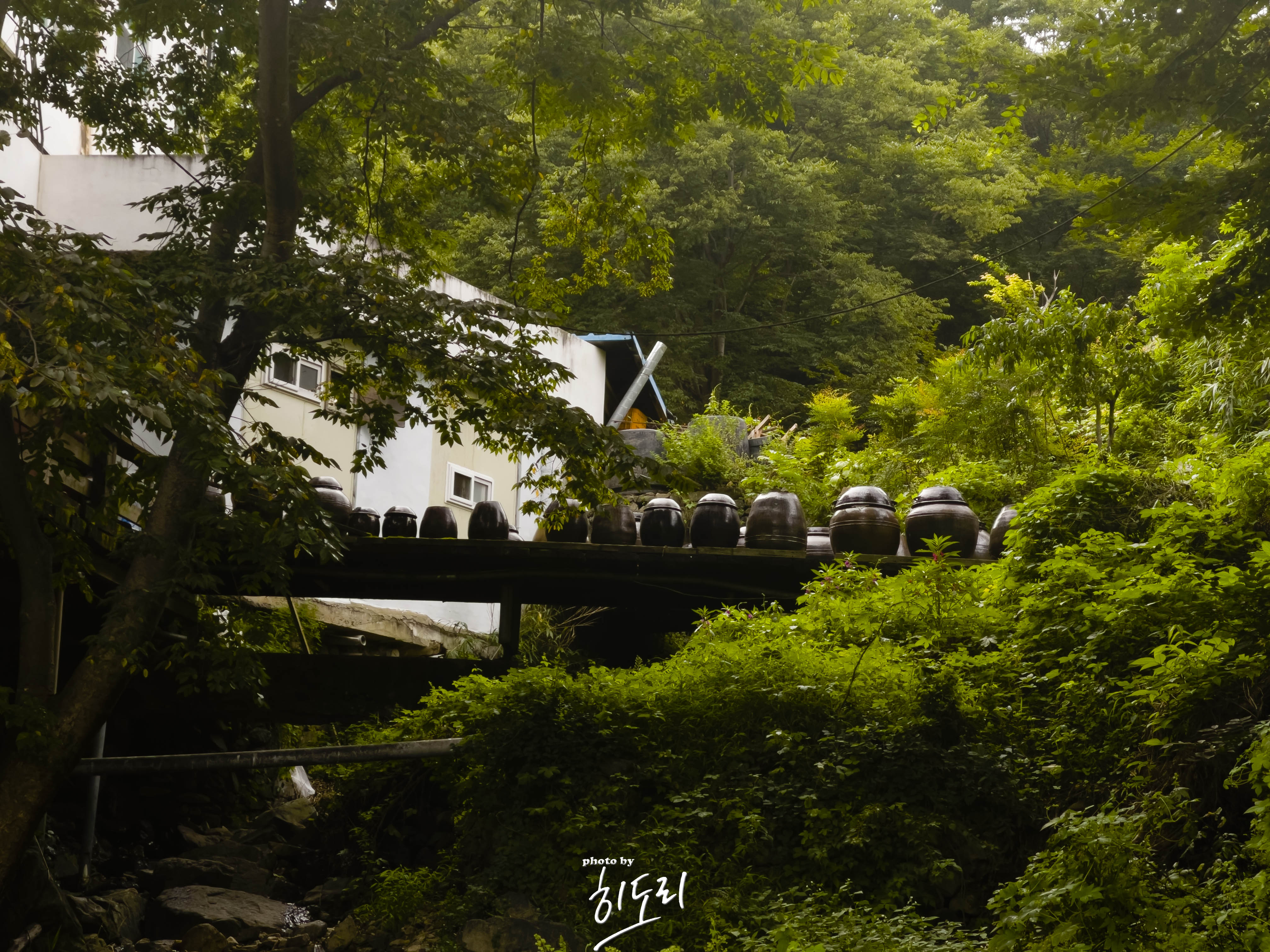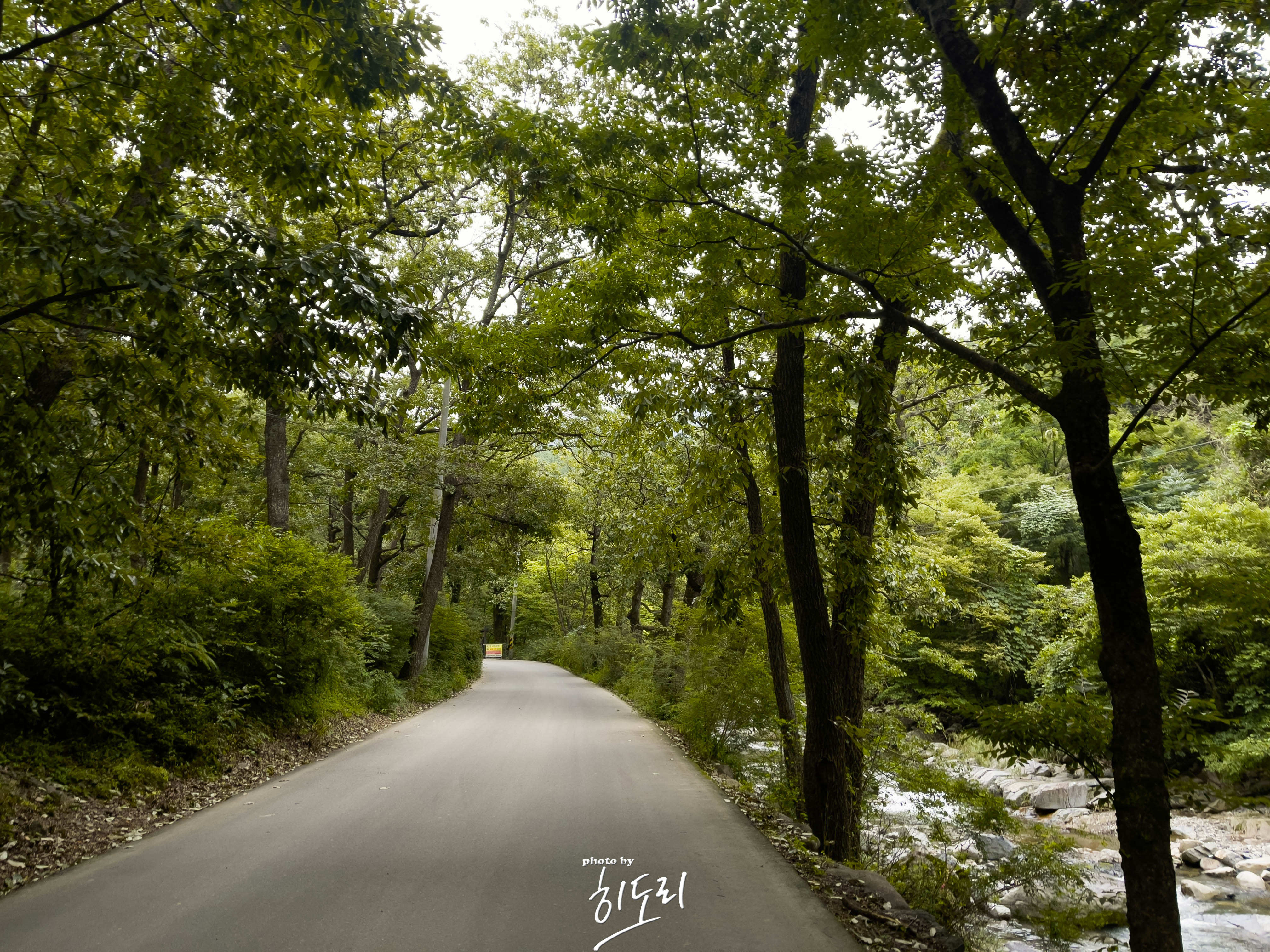 바로 앞은 흑룡폭포에서부터 흘러오는 시원한 강물이 흐릅니다.