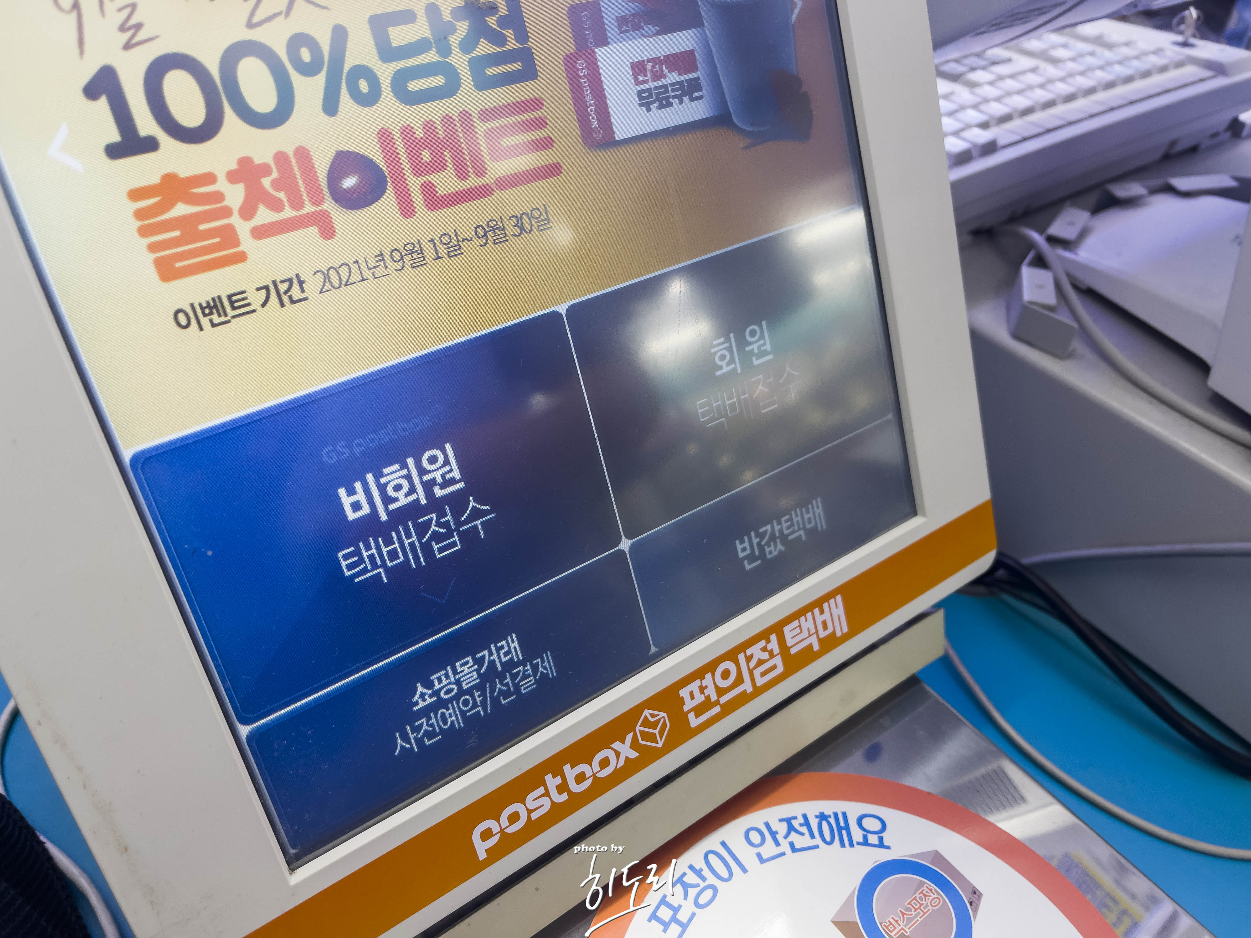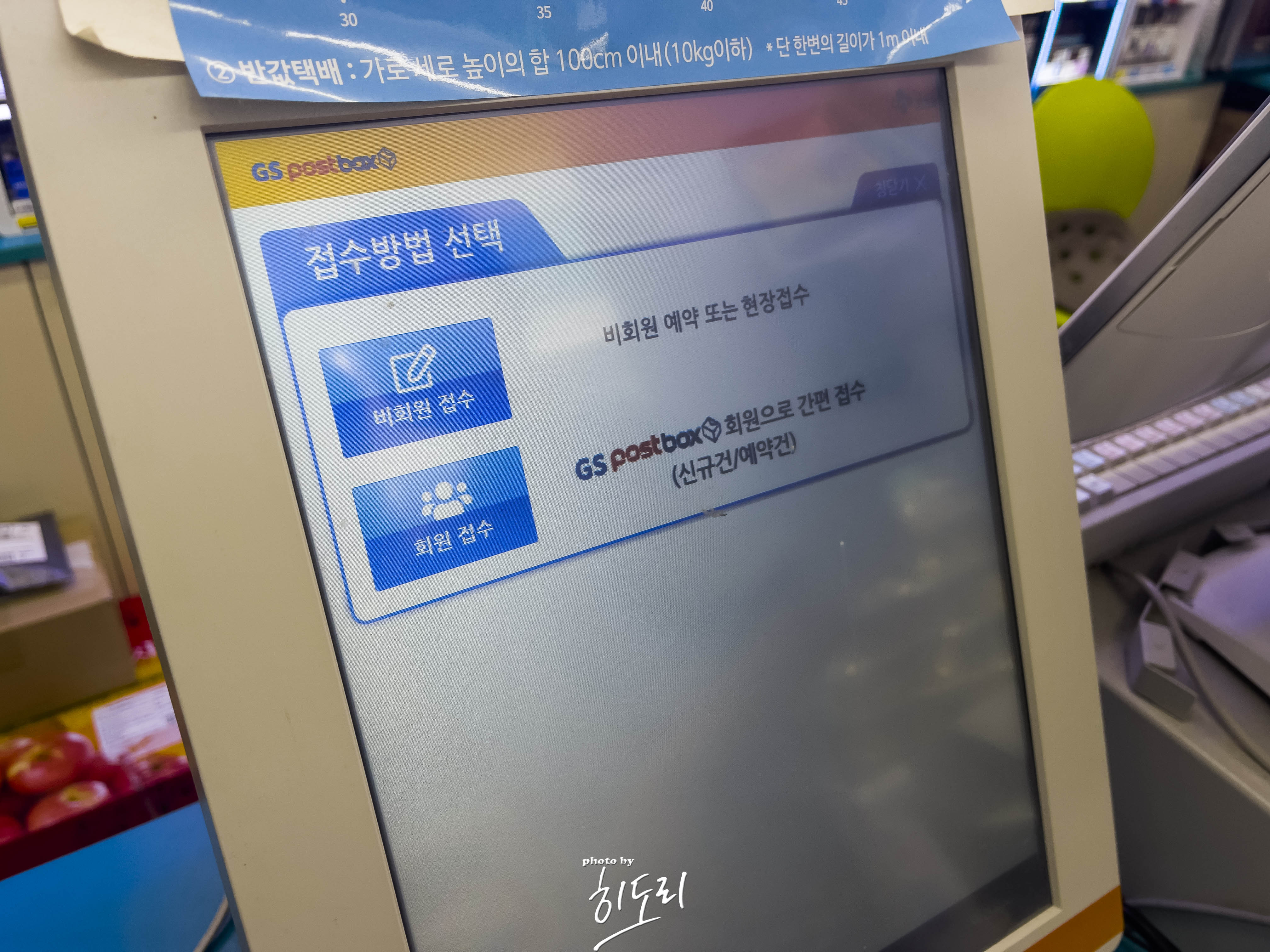 GS편의점 내 설치되어 있는 편의점택배 기계에서 회원/비회원 선택 후 접수를 진행하시면 됩니다.