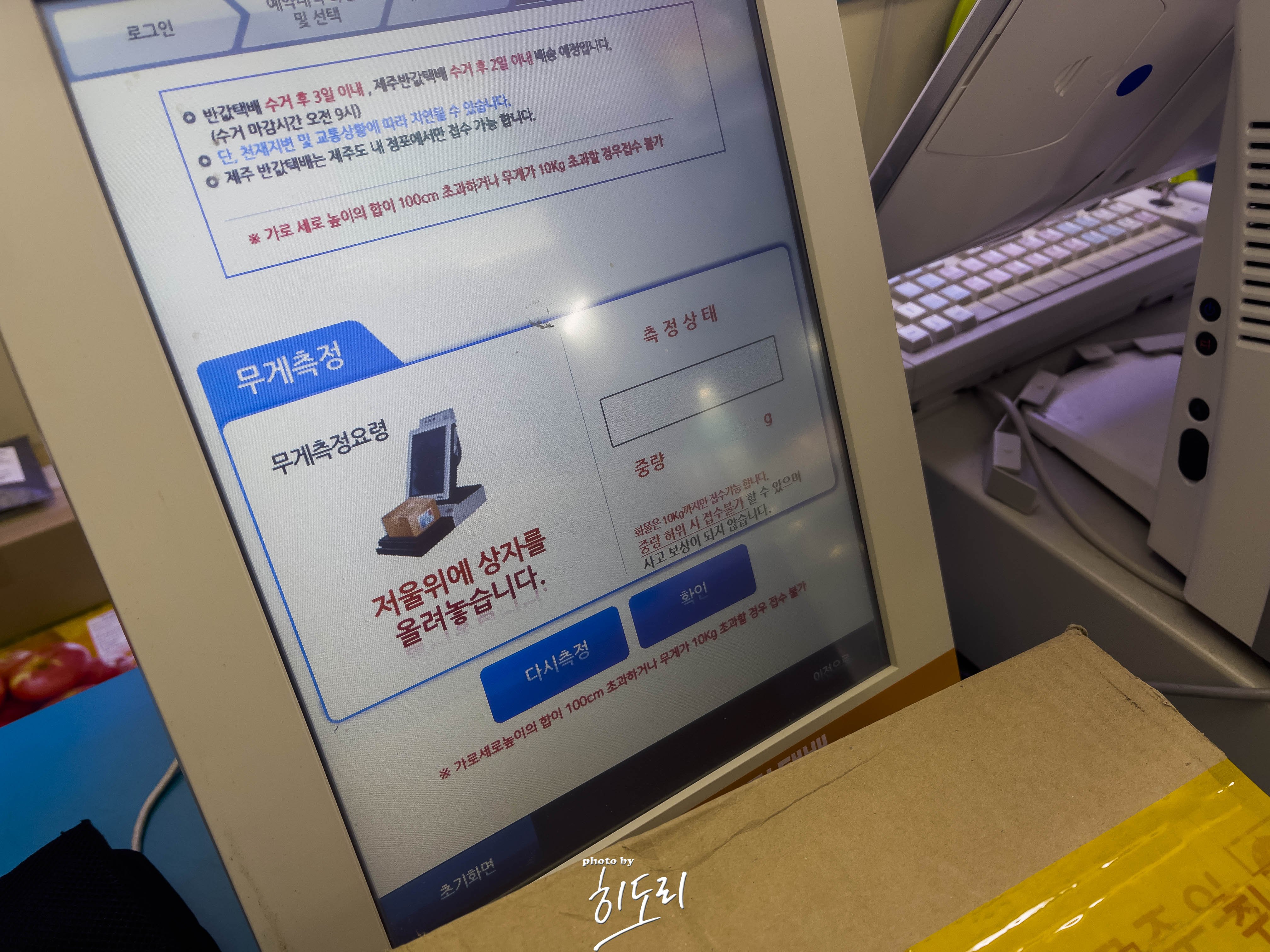 무게 측정 후 받는사람 주소와 인적사항을 작성하면 끝!!!