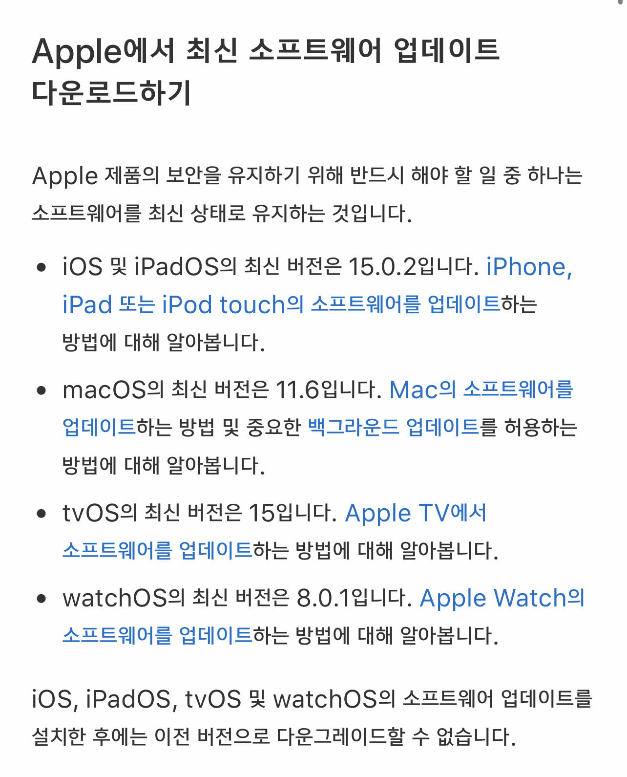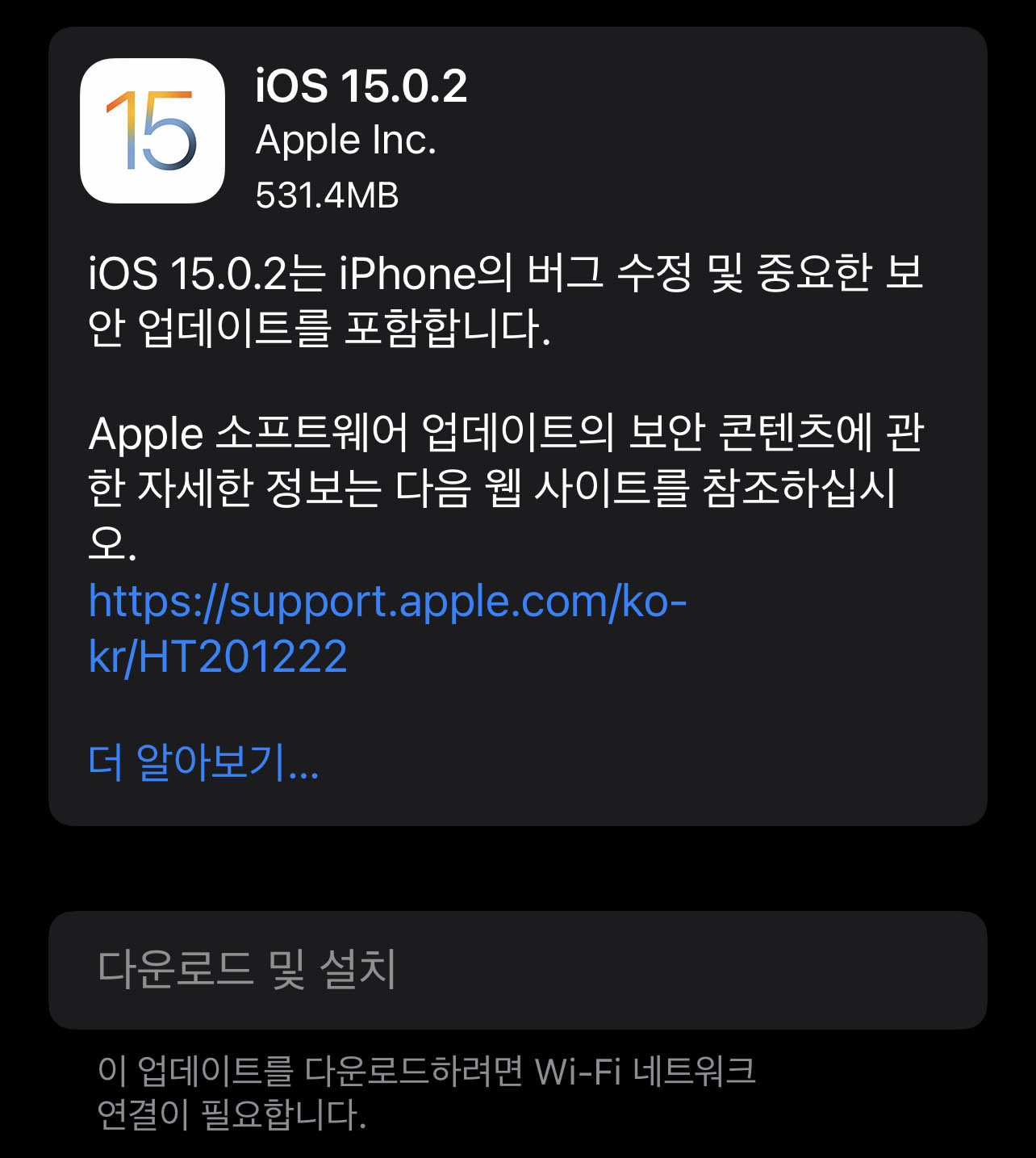 이번 업데이트인 iOS 15.0.2는 각종 버그들이 수정된 업데이트로 설치하는 것을 추천드립니다.