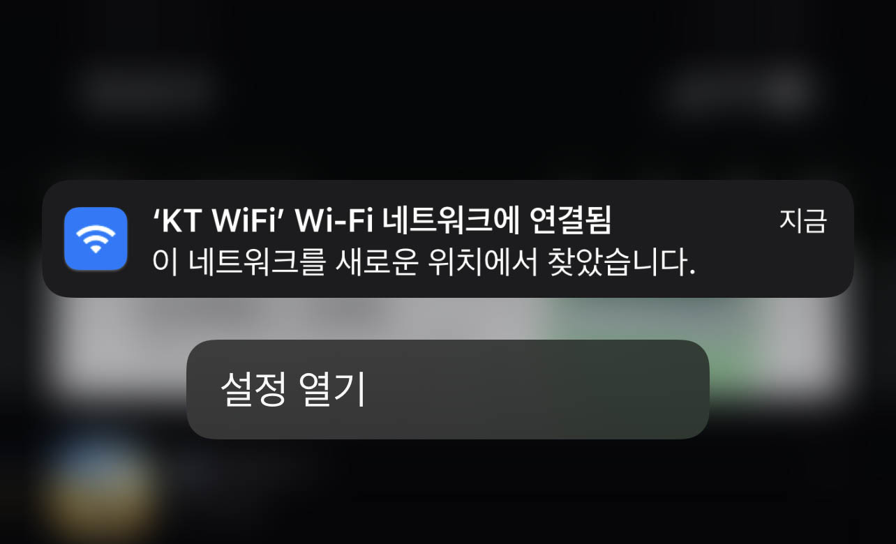 사용 가능한 Wi-Fi 네트워크가 감지되지 않는 문제가 해결되었는데 보시다시피 와이파이가 연결이 되면 이렇게 알림이 오네요.