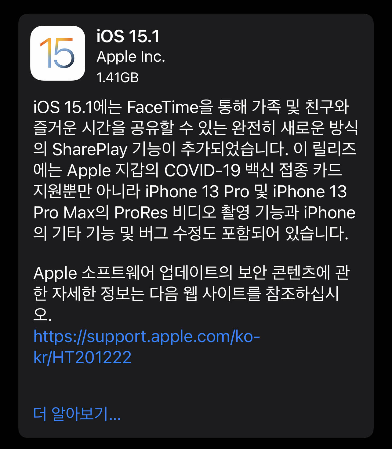 iOS 15.1.1 업데이트! 통화품질,앱아이콘버그등 수정 (0) | 2021.11.25 |