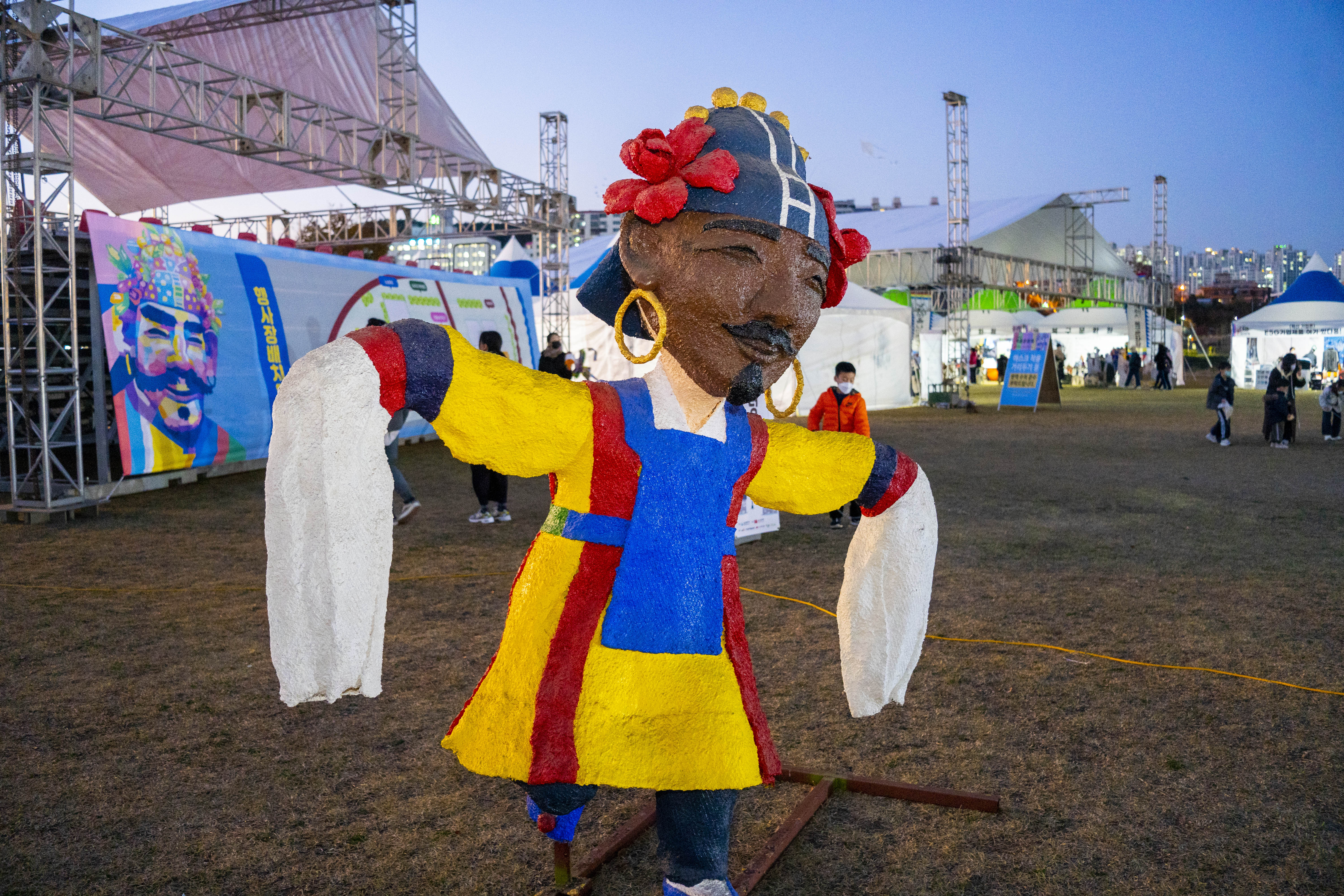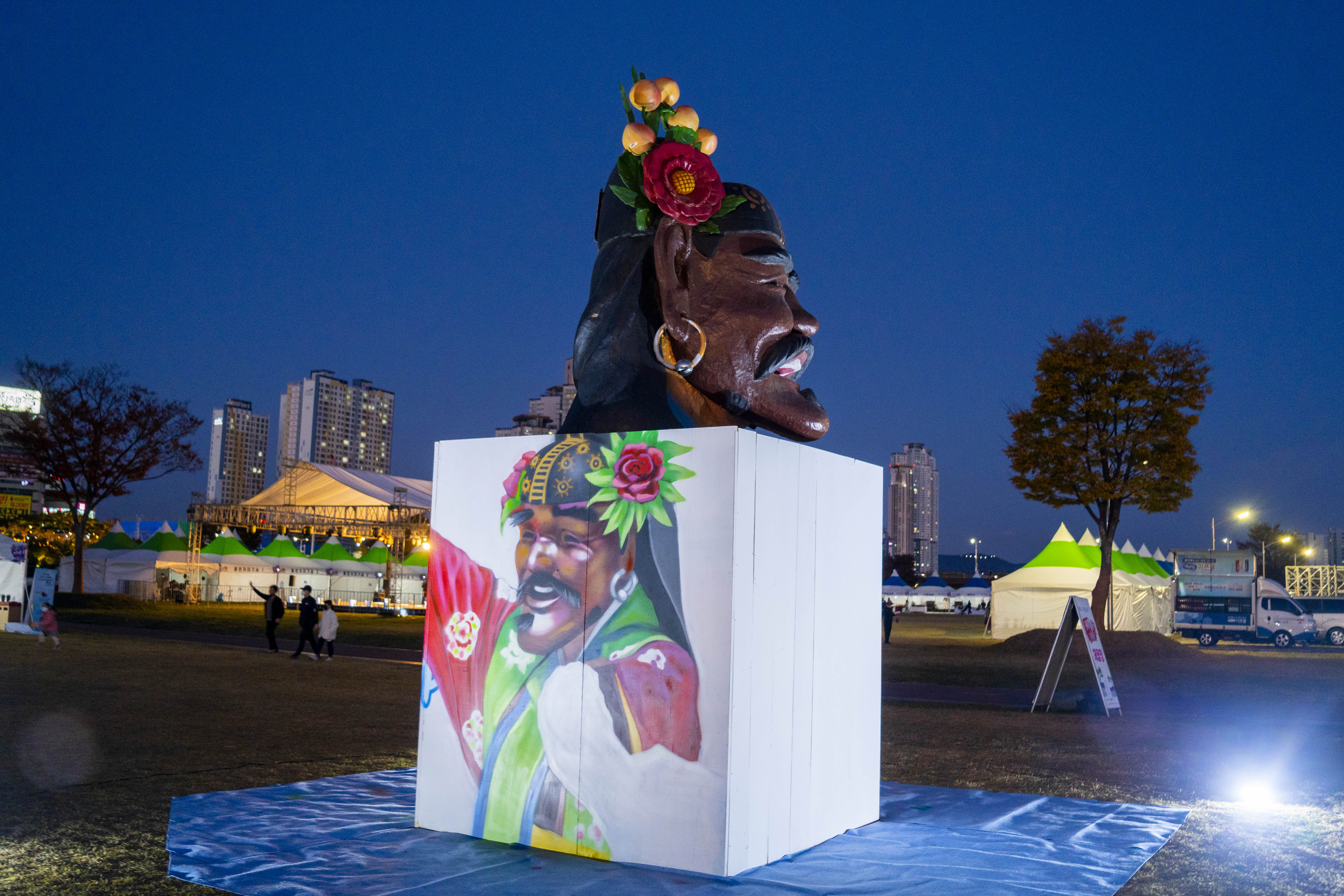 행사장 주변에는 하회탈과 비슷한 전통탈을 쉽게 볼수가 있는데 이모습은 '처용탈'이라고 하여 역귀를 물리치는 신앙탈 입니다.