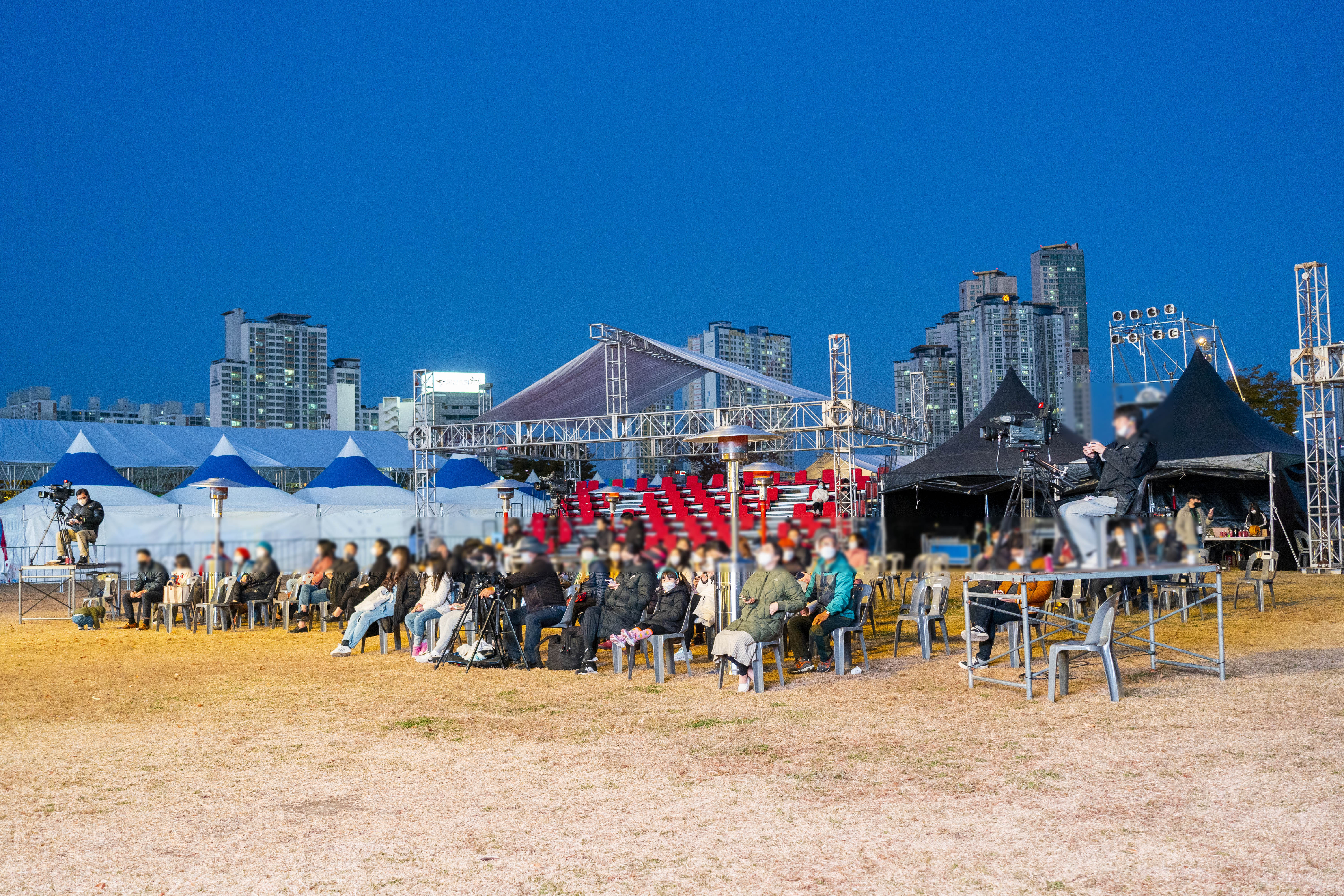 공연은 처용마당에서 열리는데 처용마당은 아무래도 사람들이 밀집이 되는 장소다 보니 출입구에서 명부작성과 체온측정을 하셔야지 입장이 가능합니다.