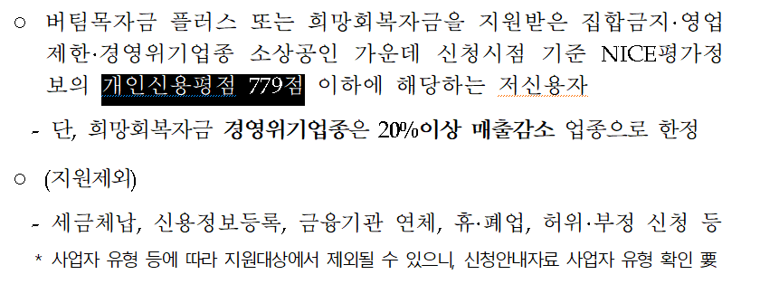 집합금지,영업제한,경영위기업종인 경우 21년 10월말 현재 상시근로자가 있는 소상공인인 경우 2천만원까지 대출