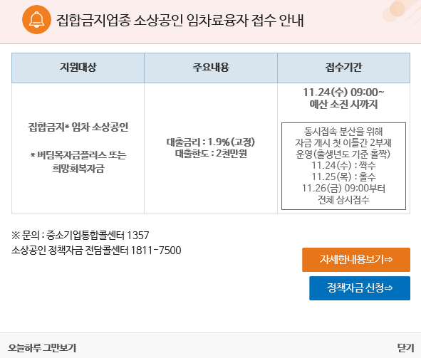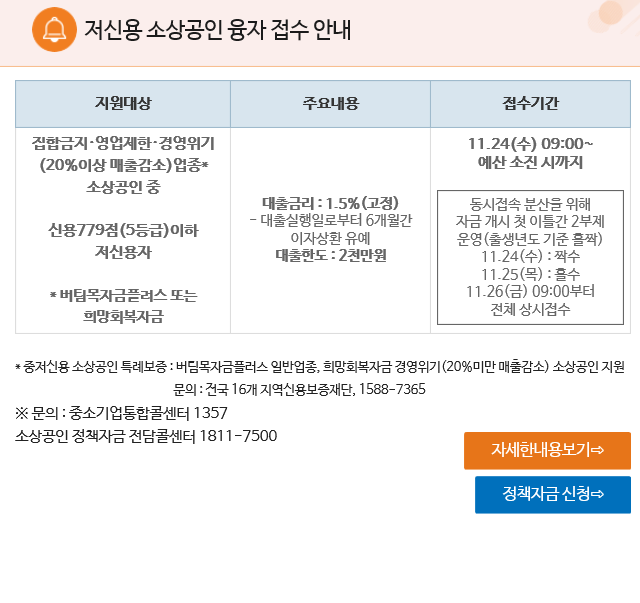 이것도 물론 일반업종은 미포함이 될 가능성이 무척 높지만 '등'이라는것에 기대를 걸며 29일에 소진공 홈페이지에 올라온다고 하니 그때 정확한 정책자금에 대해 알아볼수가 있겠군요.