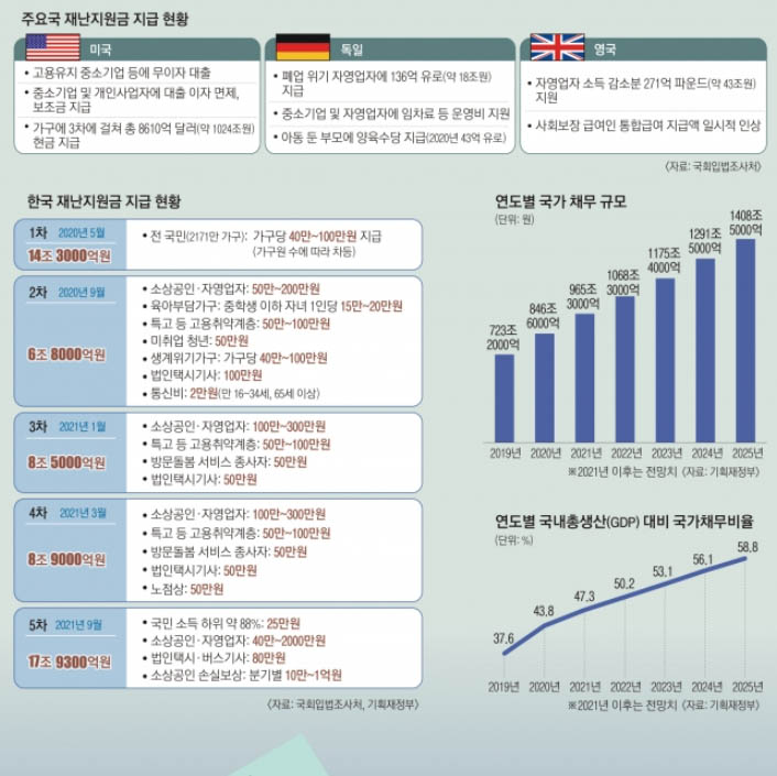 잠시 다른 이야기로 넘어가지면 다른 나라들 재난지원금 지급 현황 입니다.