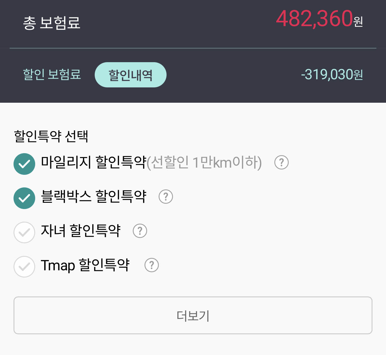 작년에 66만원에 가입하고 무사고인데 4만원정도 할인이 되네요.