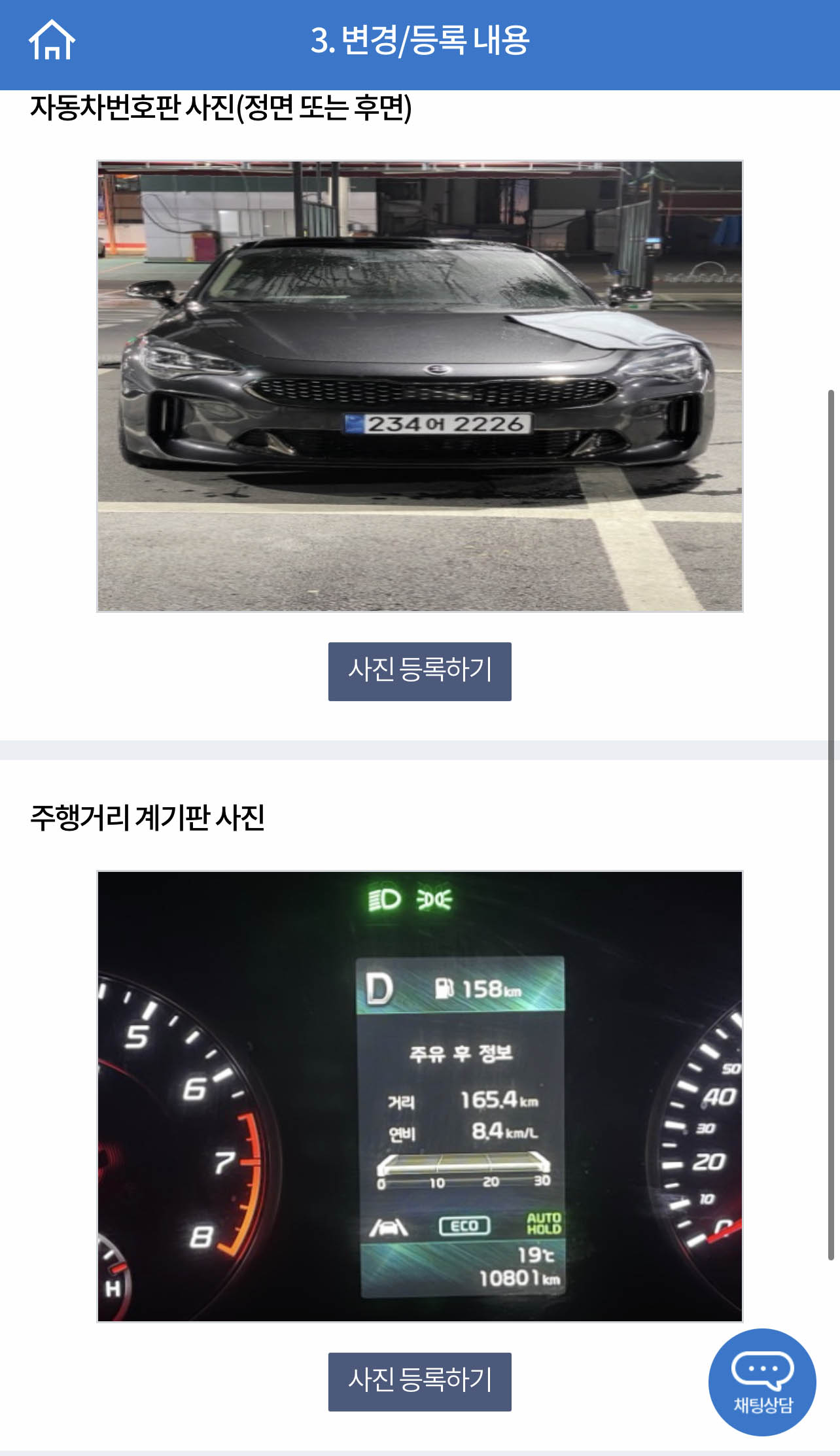 문자 확인 후 링크를 타고 들어가서 자동차번호판 사진, 주행거리 계기판 사진을 등록하시면 됩니다.