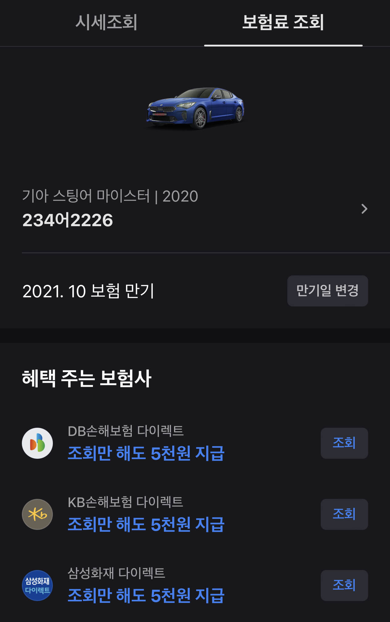 저는 토스로 들어가서 자동차보험을 조회했습니다.