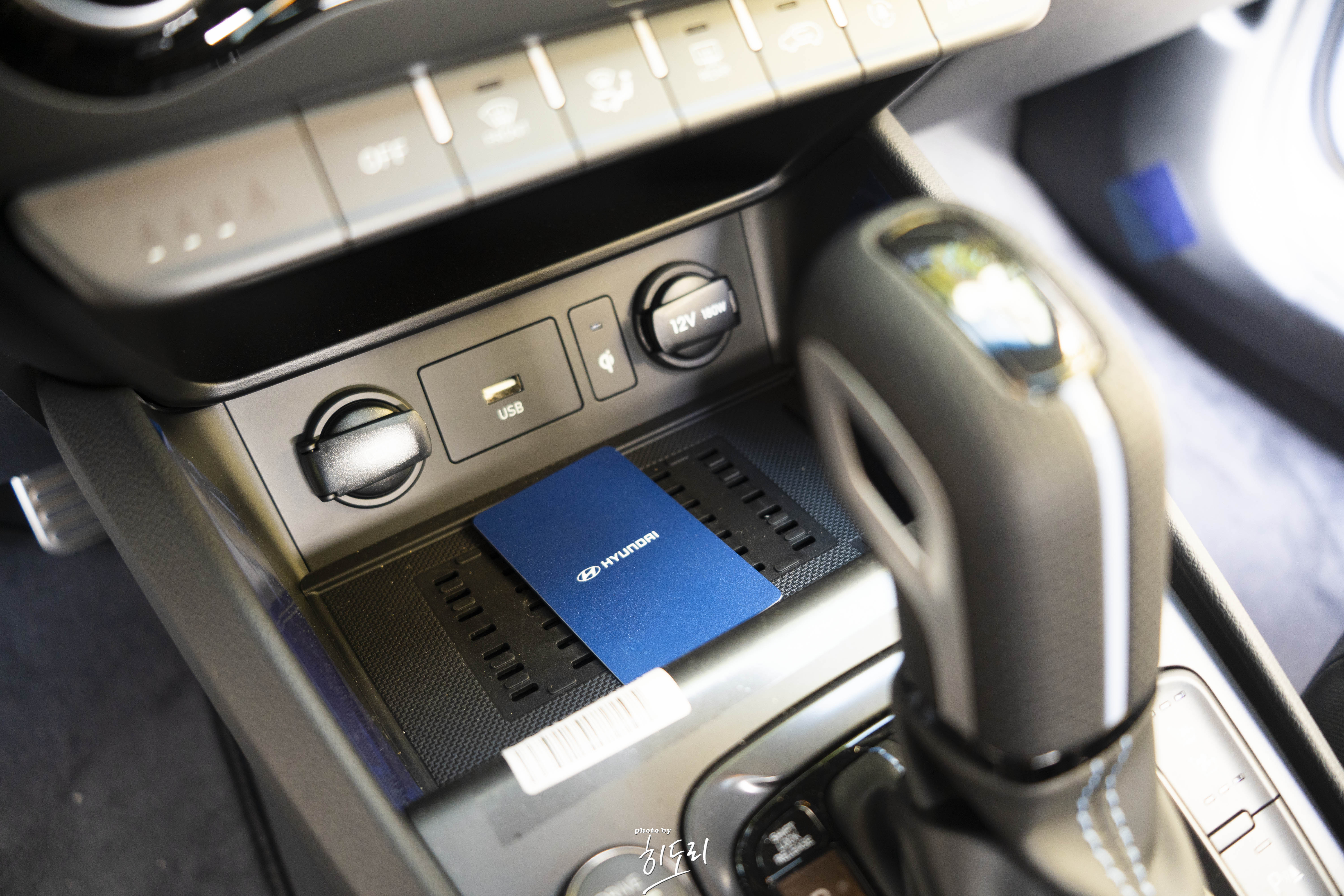 디지털키를 이용하신다면 이렇게 무선충전기 부분에 카드나 스마트폰을 올려둬야지 시동이 걸립니다.