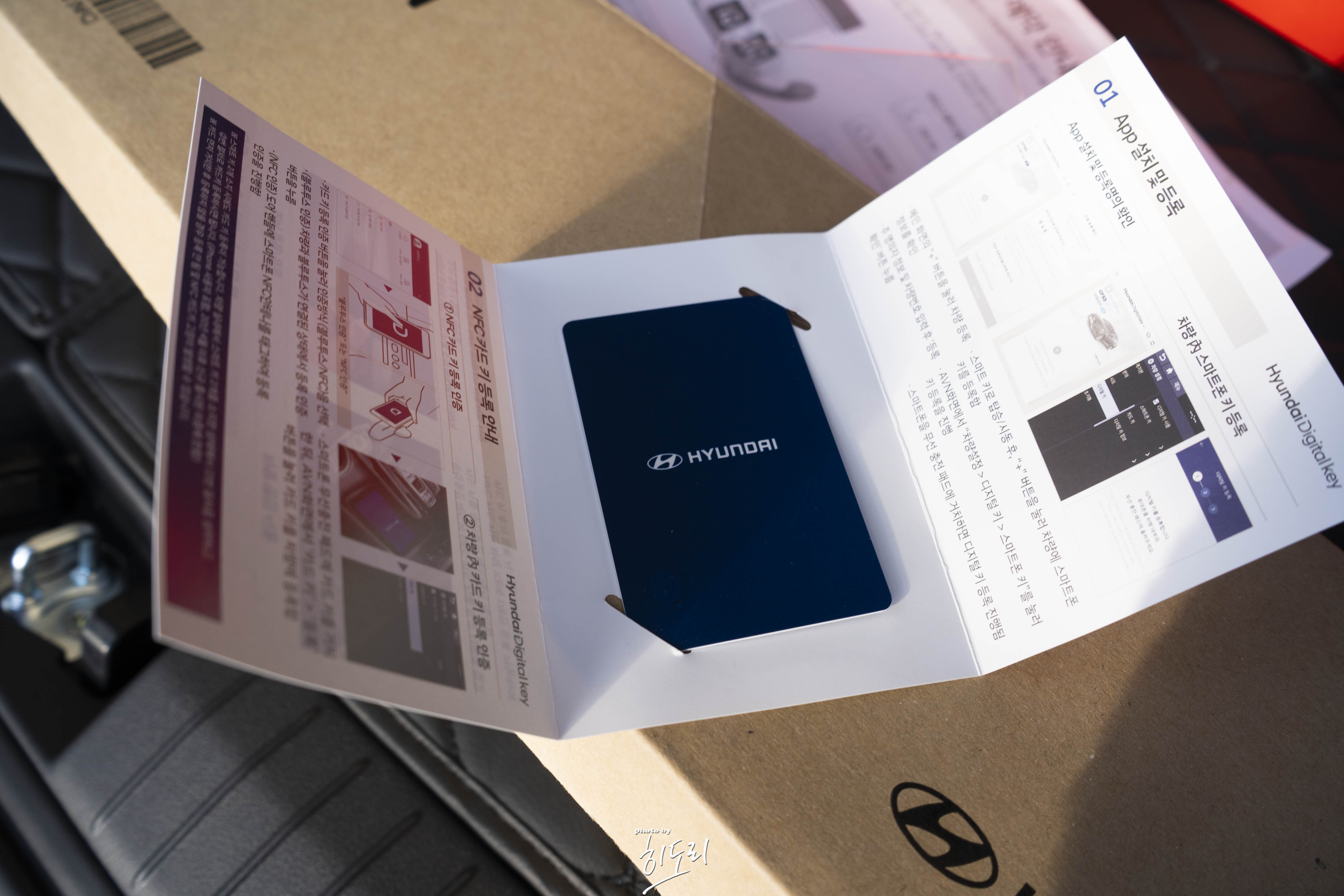 카드를 사용하기 위해선 차량 도어부분에 교통버스를 찍듯이 찍어야되는데 카드를 일반 스마트키인 경우 그냥 호주머니에 넣어두고 손으로 띡 눌리면 되지만 카드는 굳이 한번 더 필요로 하기에....