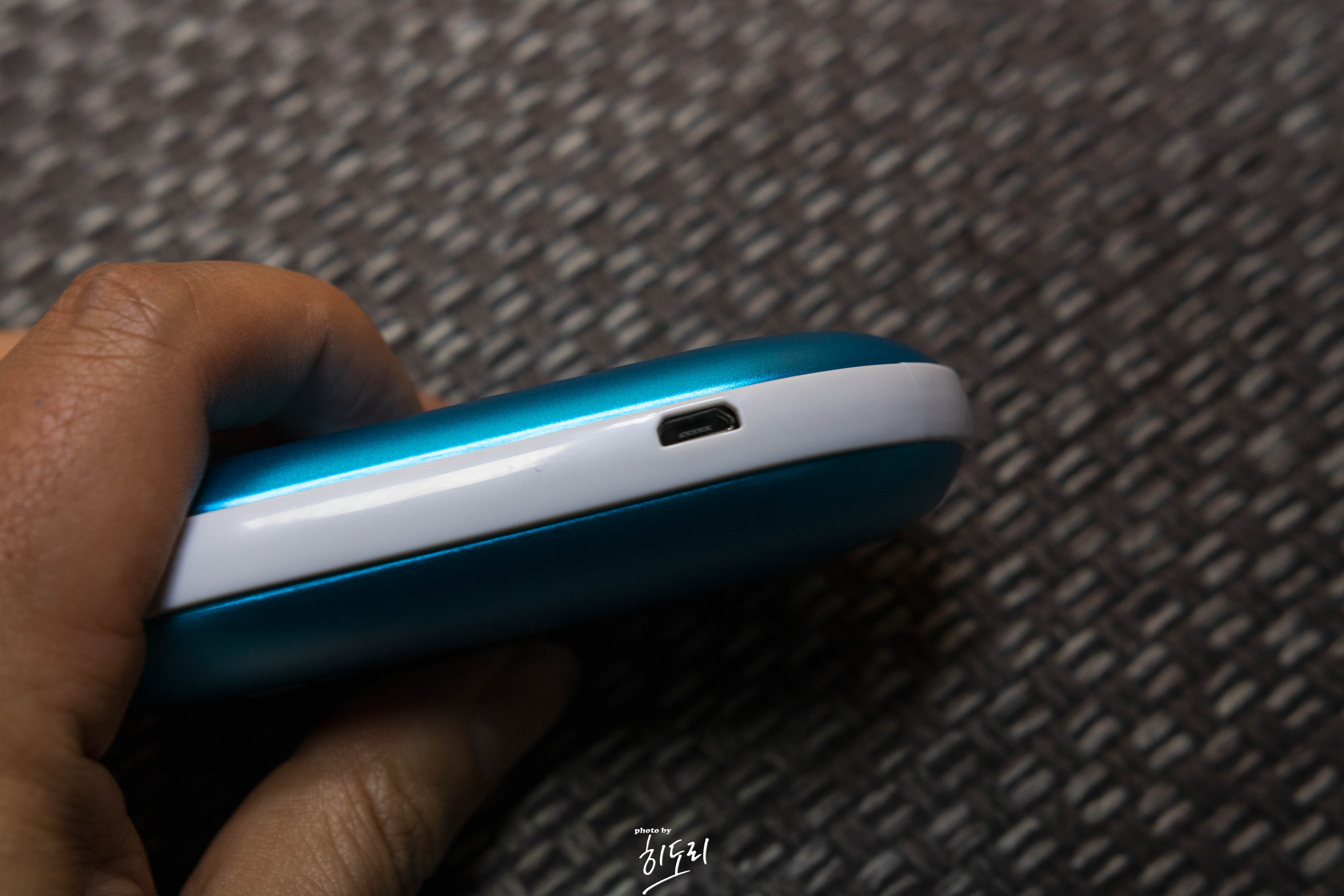 충전은 5핀 케이블로 충전을 할수 있으며 USB포트를 이용해 보조배터리로도 사용할수 있습니다.