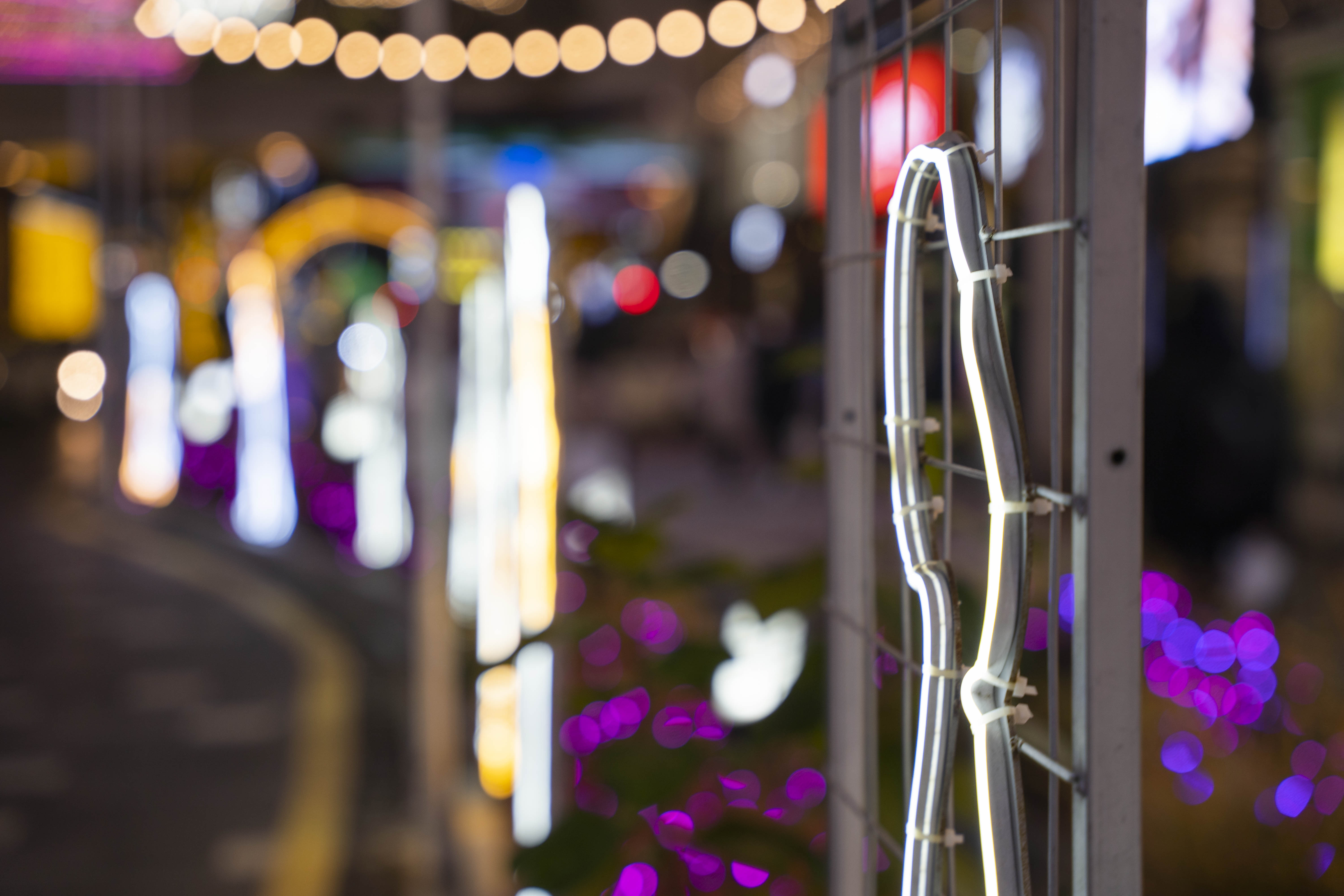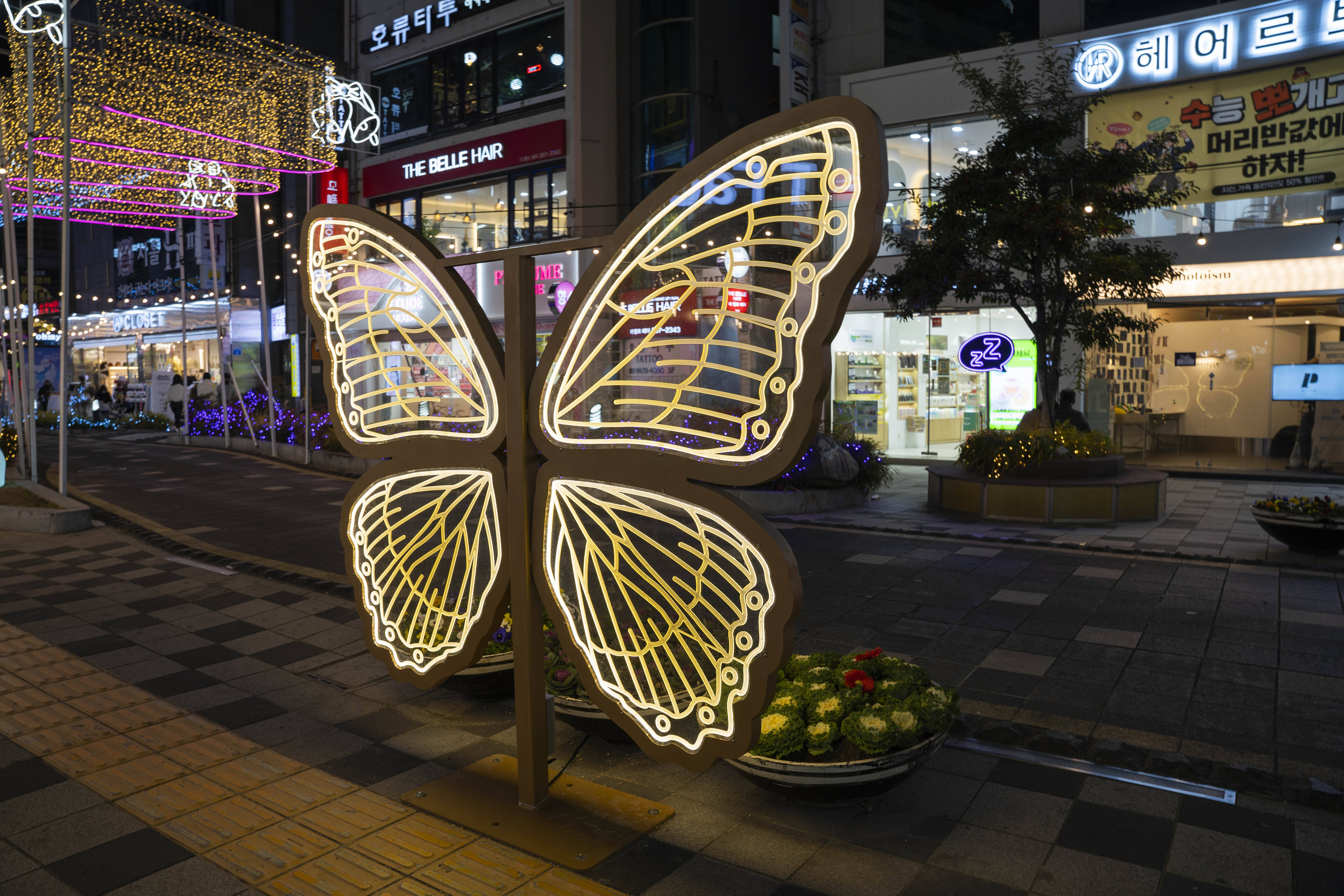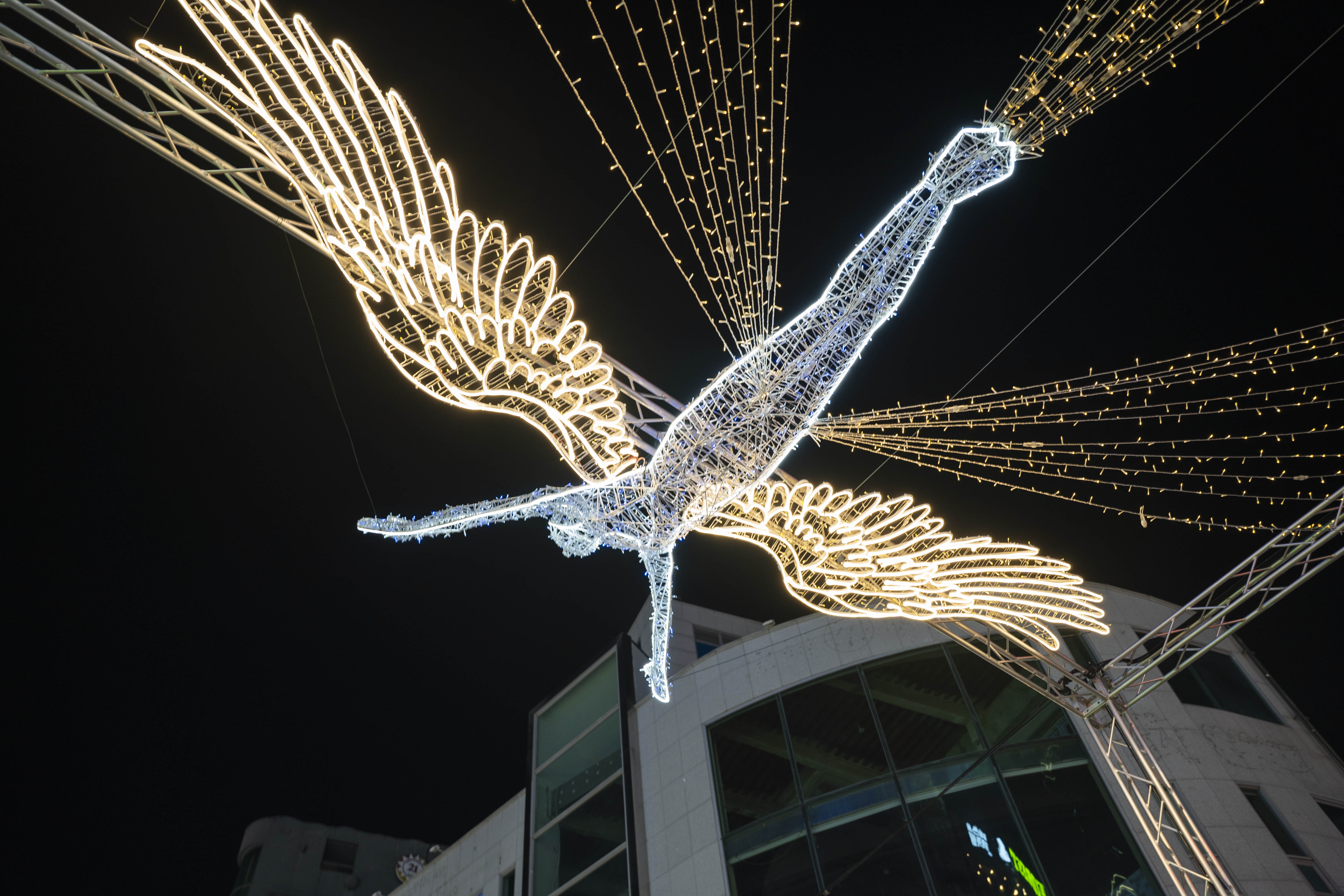 알록달록 반짝이는 전구로 꾸며진 길, 날개 모양 포토존 등 거리 전체가 아름답게 점등된 조형물로 꾸며져 있습니다.