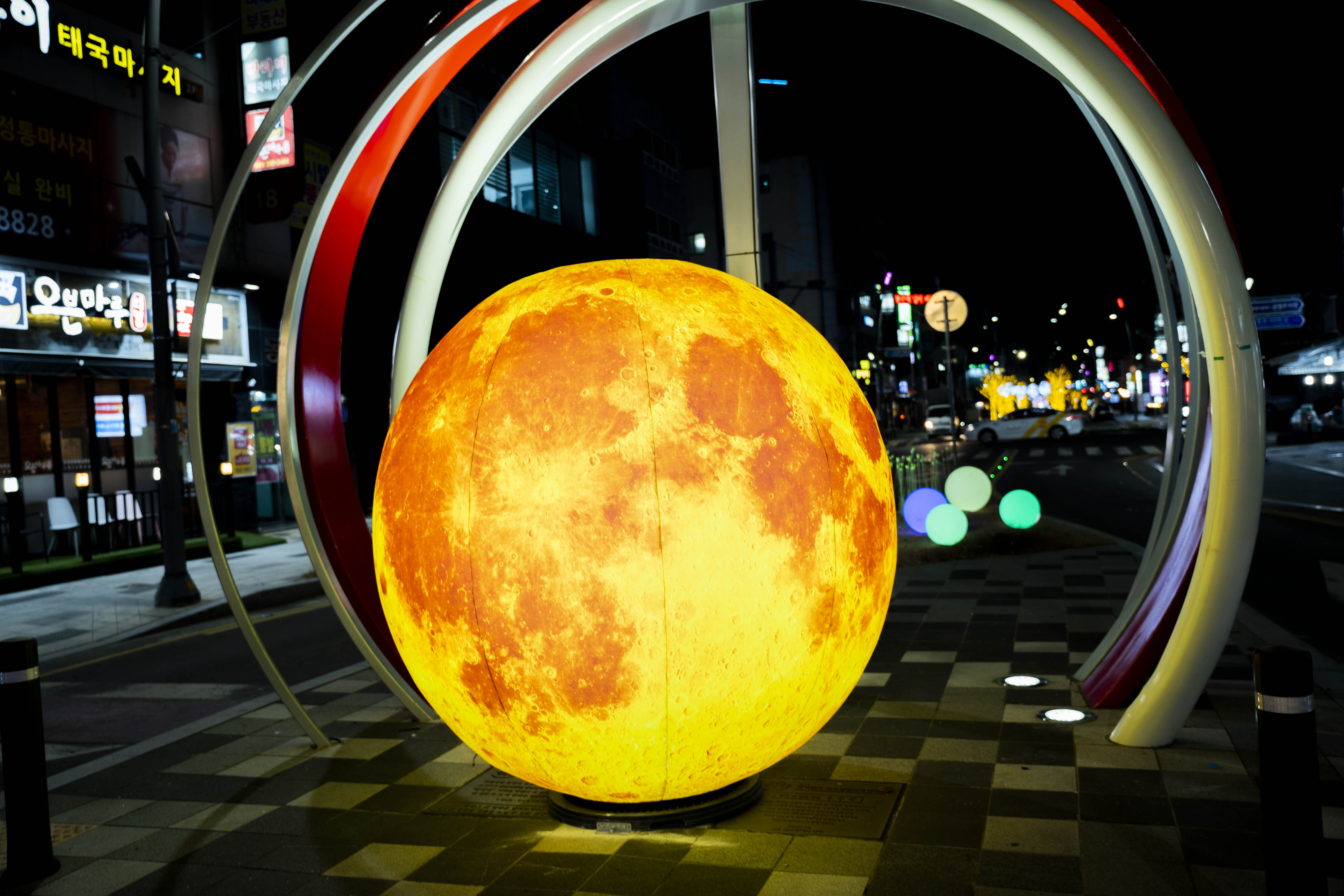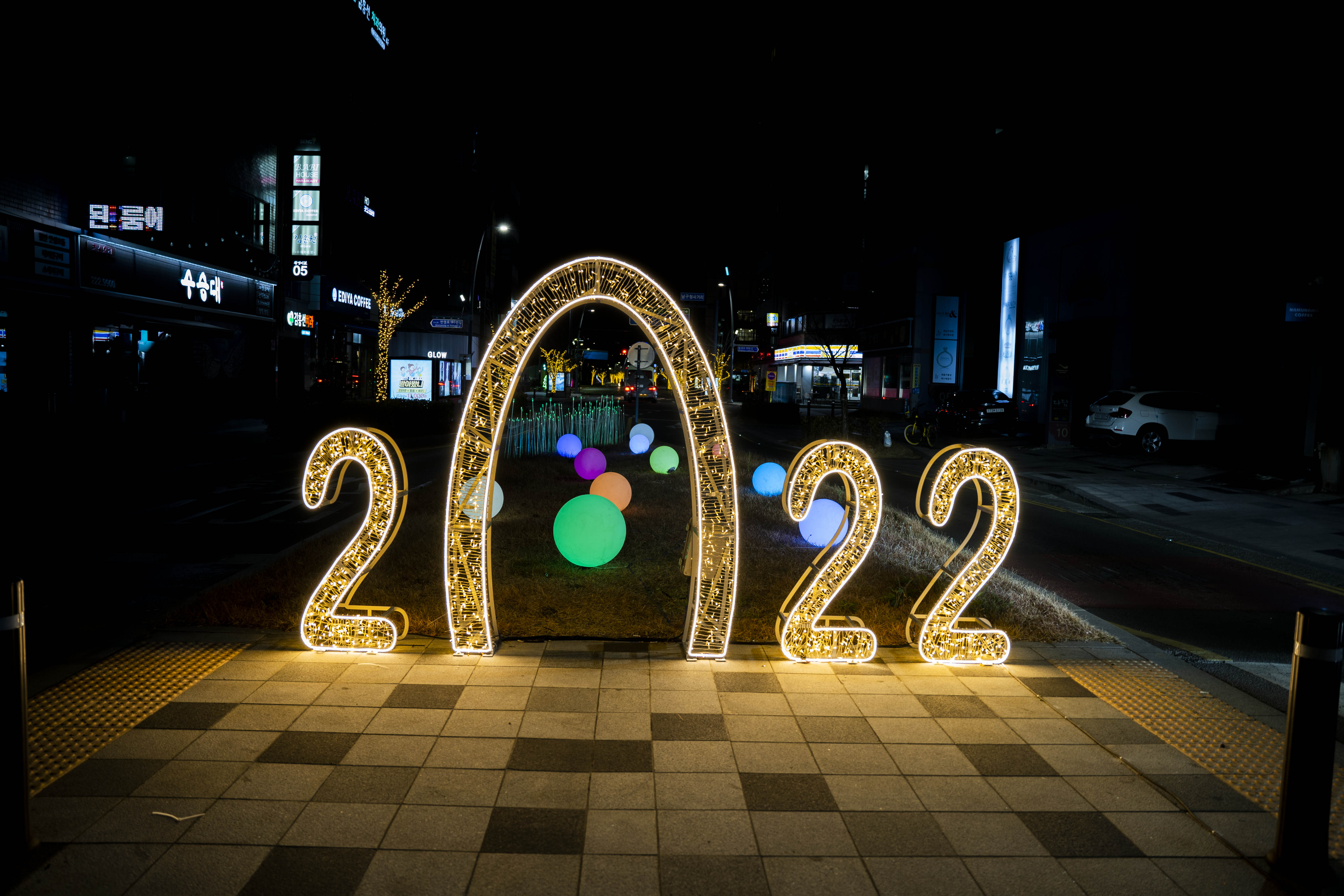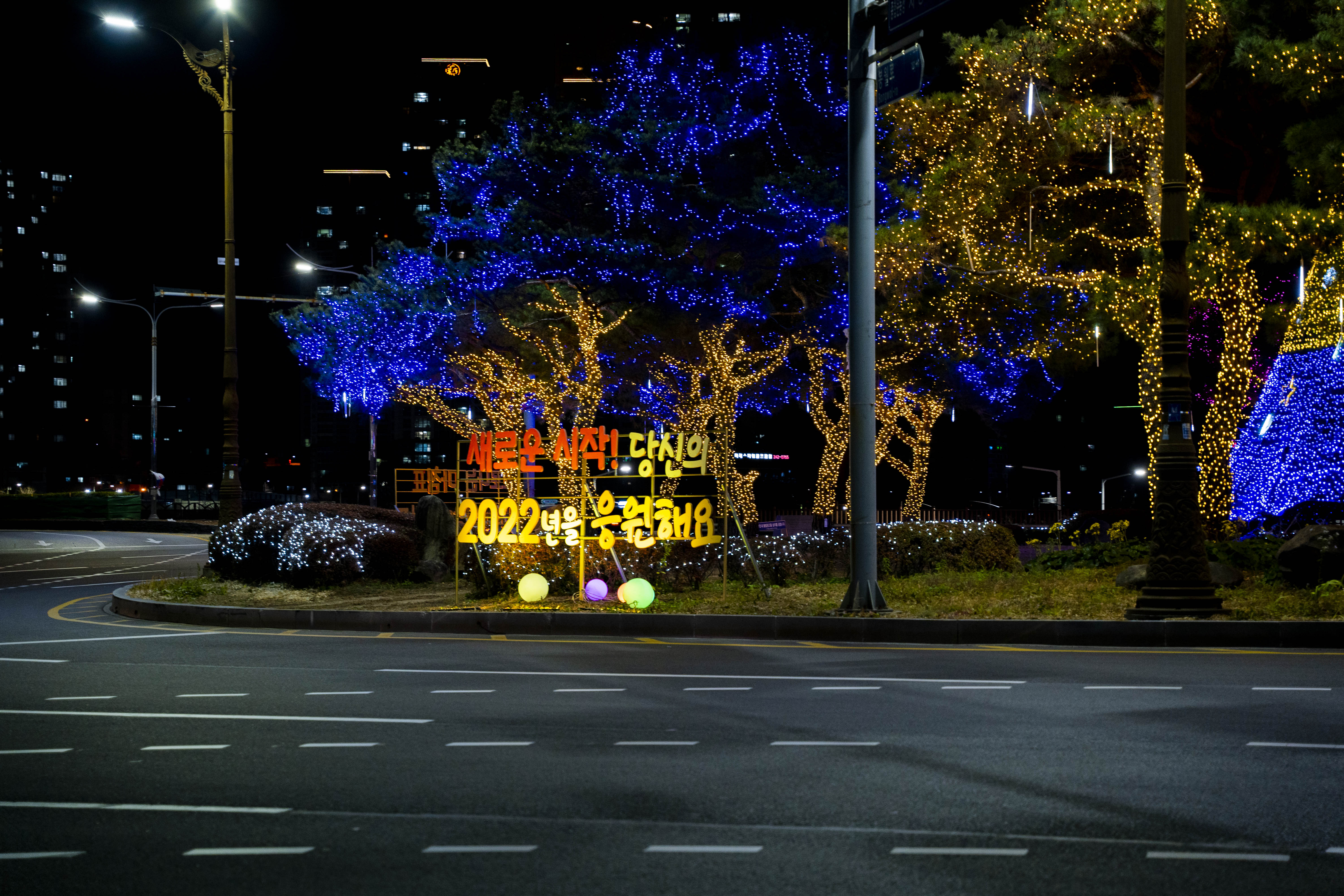 왕생이길에는 2022년을 알리는 LED조명과 달조명이 설치가 되어있는데 도로 중간의 인도에서 멋진 사진을 남길수가 있는곳 입니다.