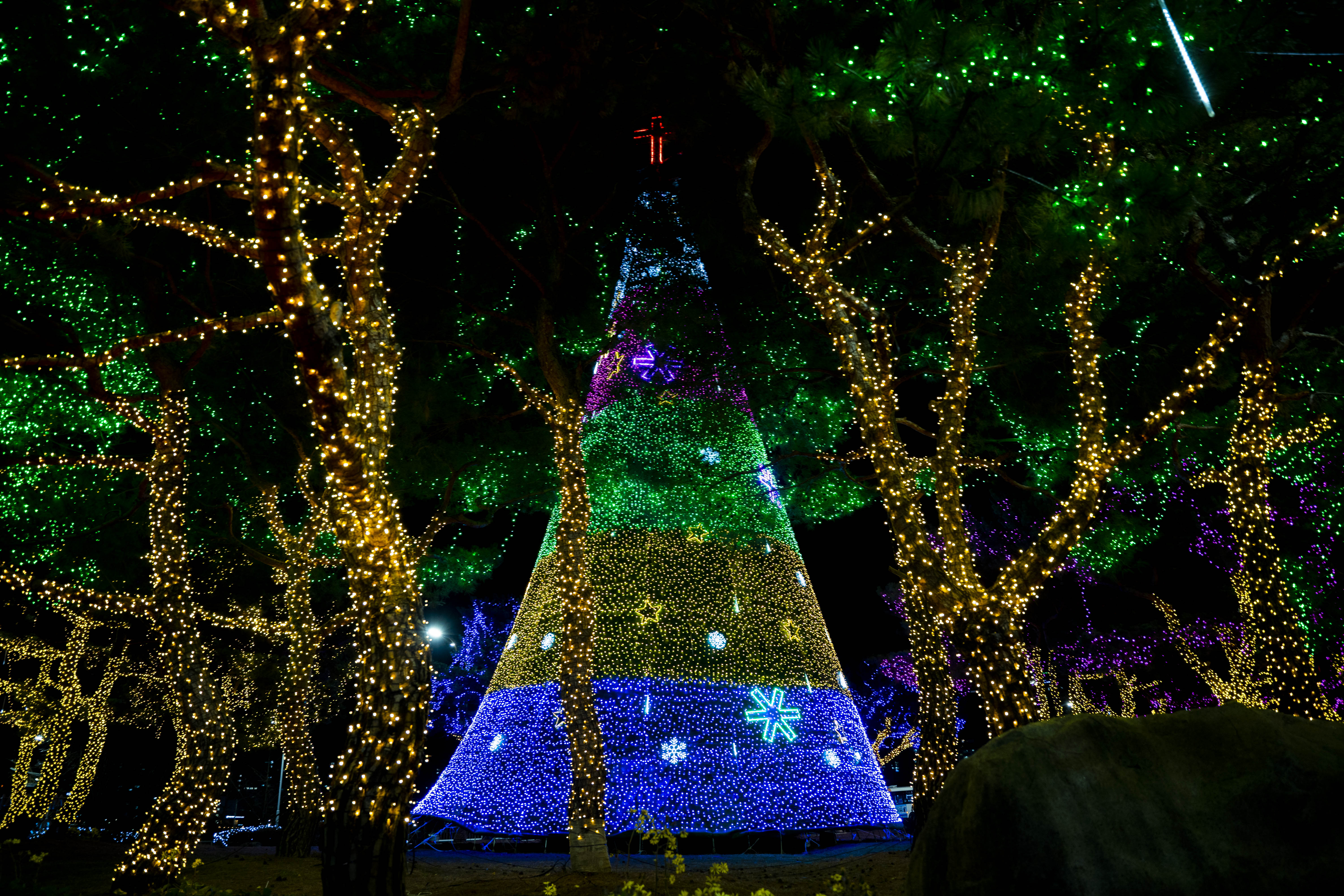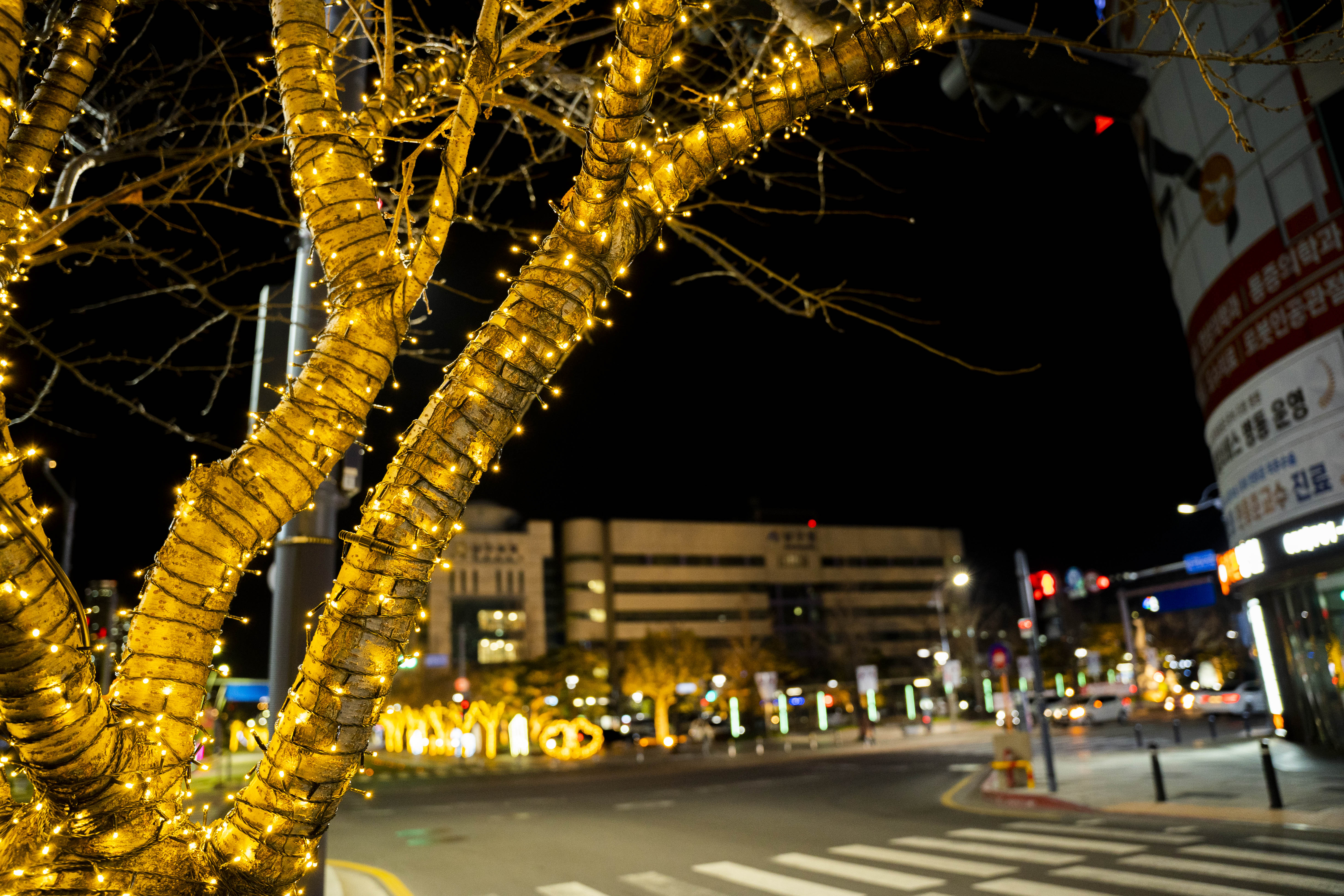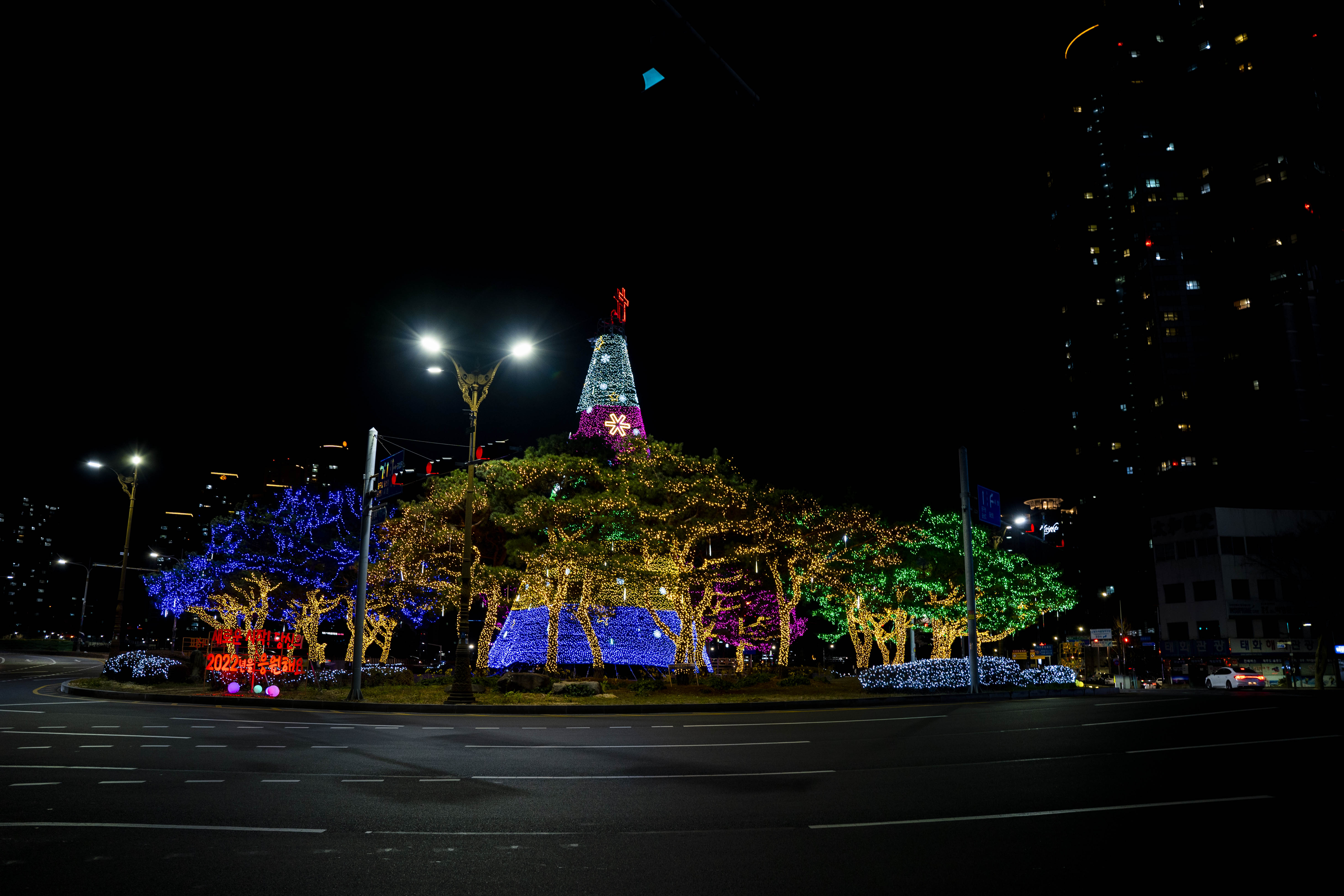 태화로타리 중앙부에 대형 크리스마스트리가 설치가 되어 있으며 외곽부는 해송,수목가지등 은하수 조명들이 설치가 되어 있어 태화로타리를 이용할때마다 연말연시의 느낌이 물씬 풍깁니다.