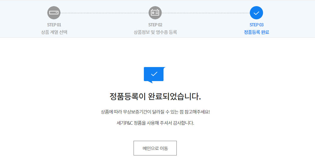 정품등록 완료!