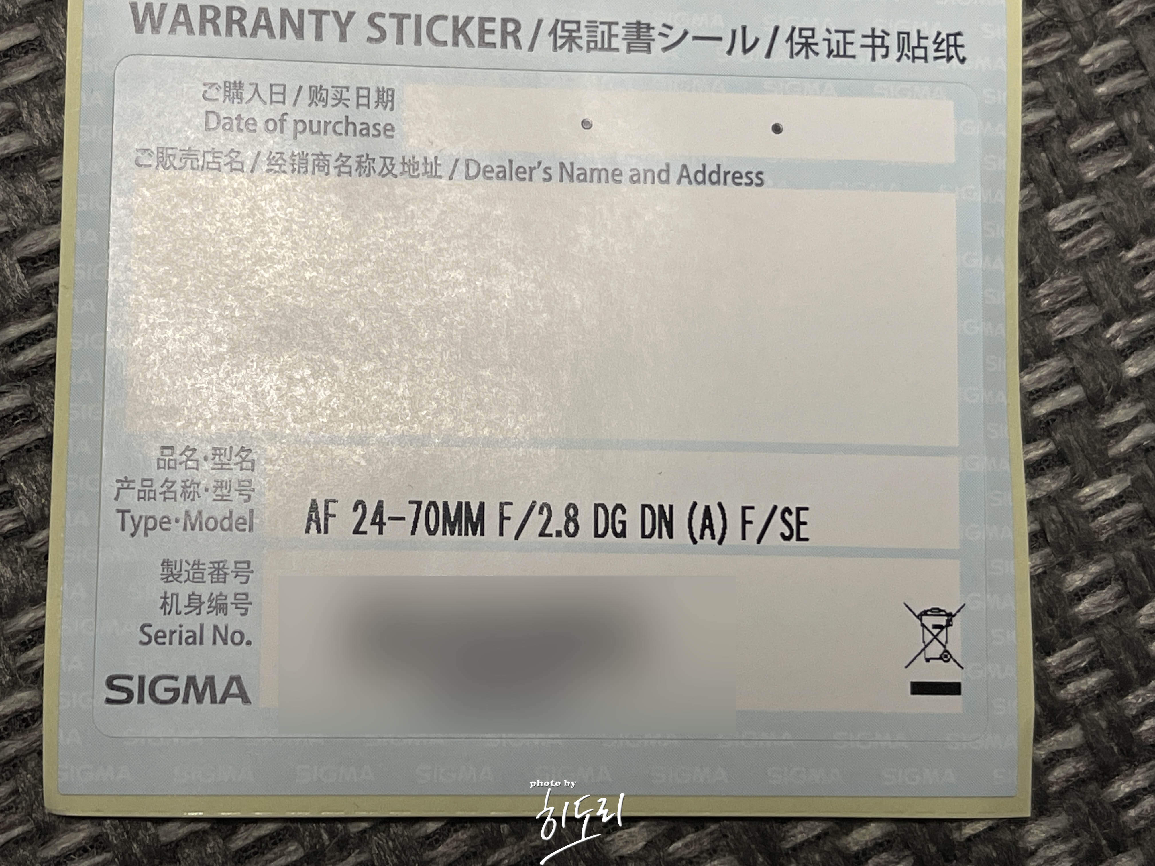 시그마 렌즈 시리얼은 이렇게 스티커로 나옵니다.