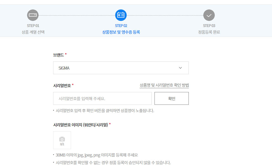 정품등록하기 위해선 시리얼번호와 구입한 영수증 사진이 꼭 필요합니다.