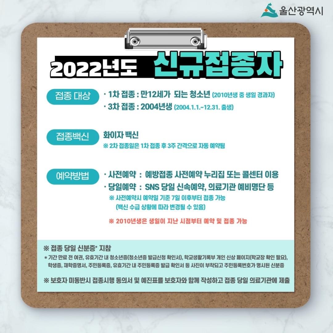 울산광역시 2022년 코로나19 백신 예방접종에 대한 포스팅 입니다.