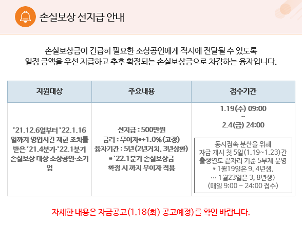 손실보상금 선지급 신청은 오는 1월19일부터 시작된다고 합니다.