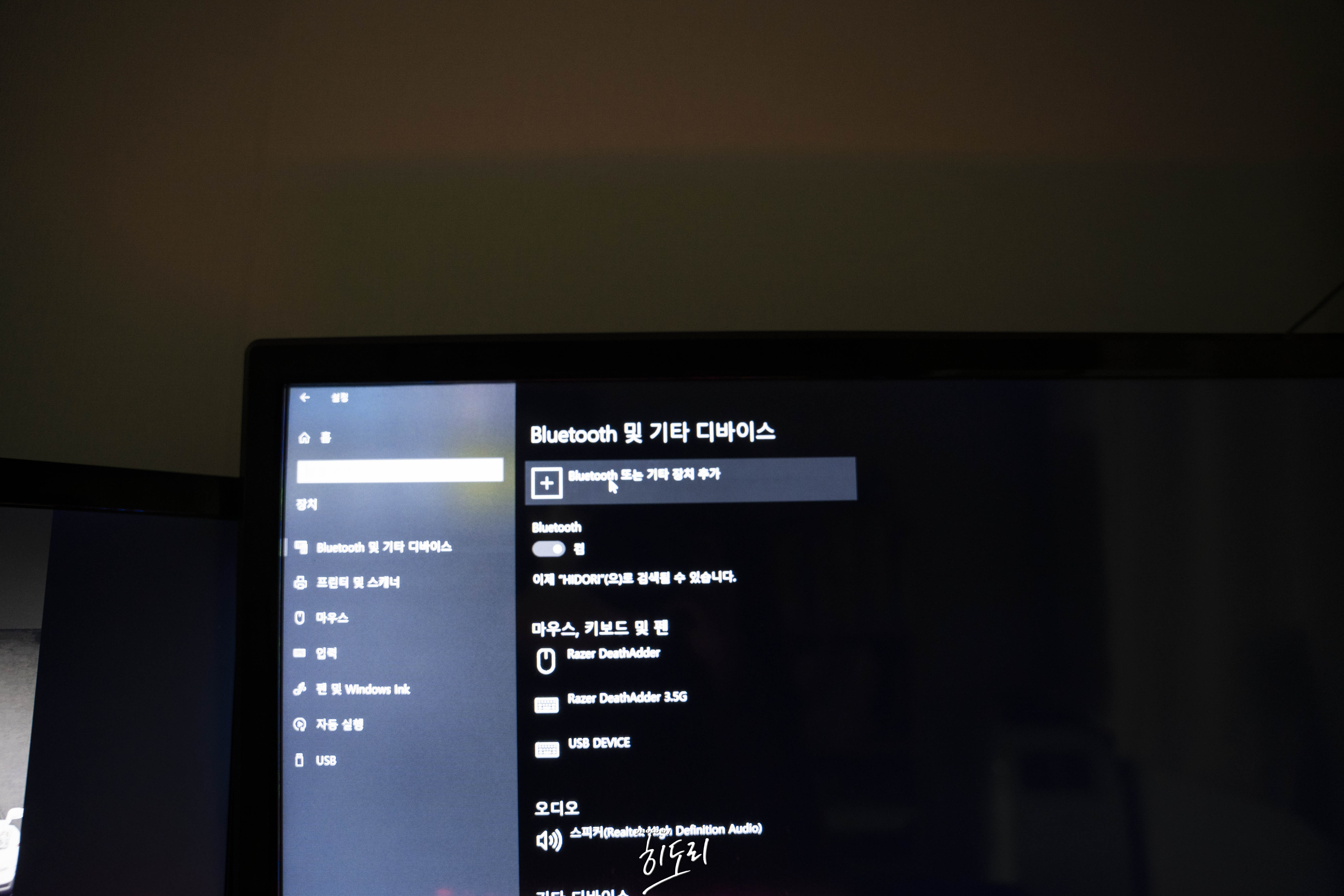 블루투스 또는 기타 장치 추가 라는 항목이 있습니다.