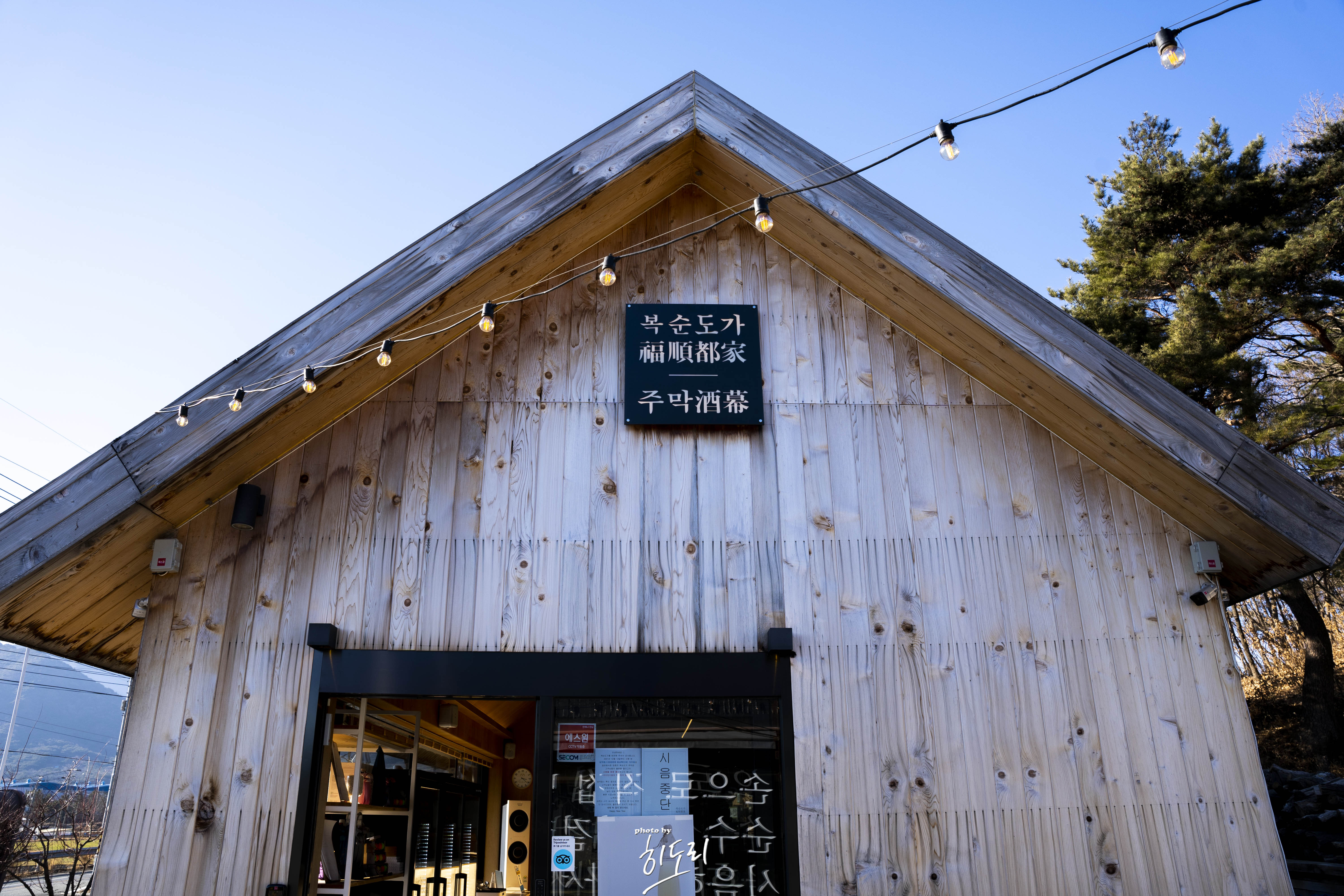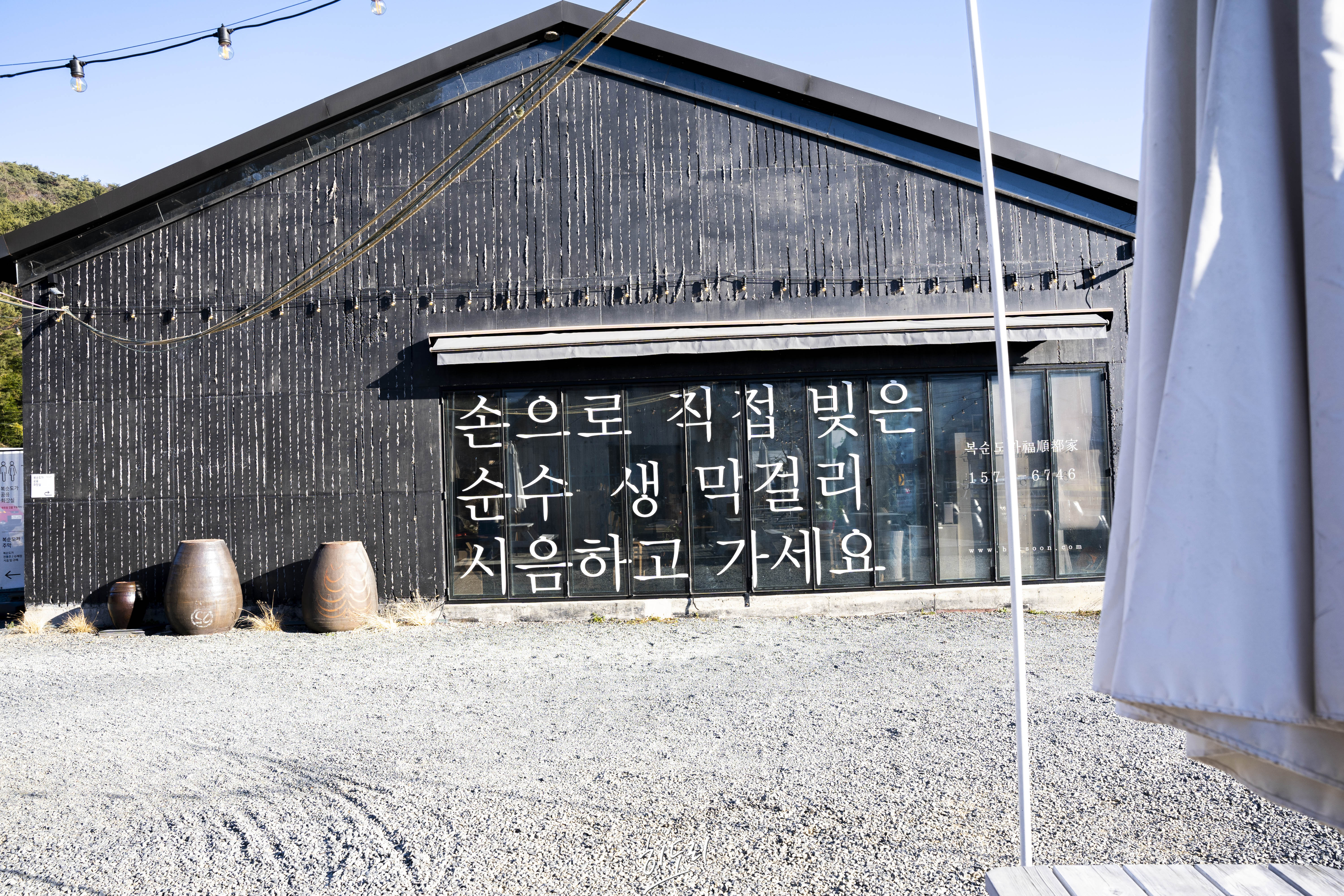 양조장의 건물은 흑색의 색으로 건축물 역시 막걸리집 답게 발효건축공법으로 완성이 된 복순도가 입니다.
