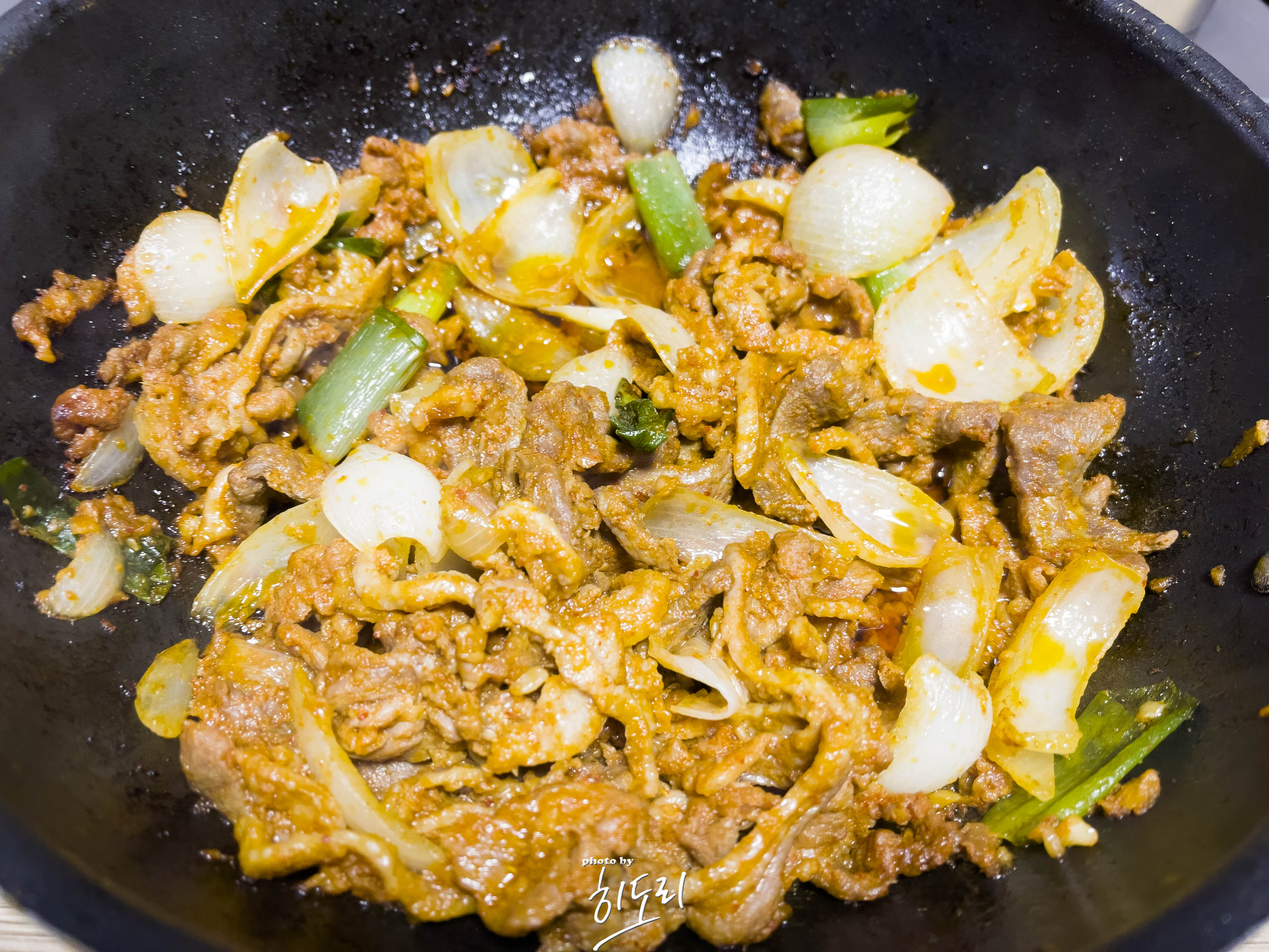 얼른 집에와서~ 호다다닥~ 오리불고기를 굽고~