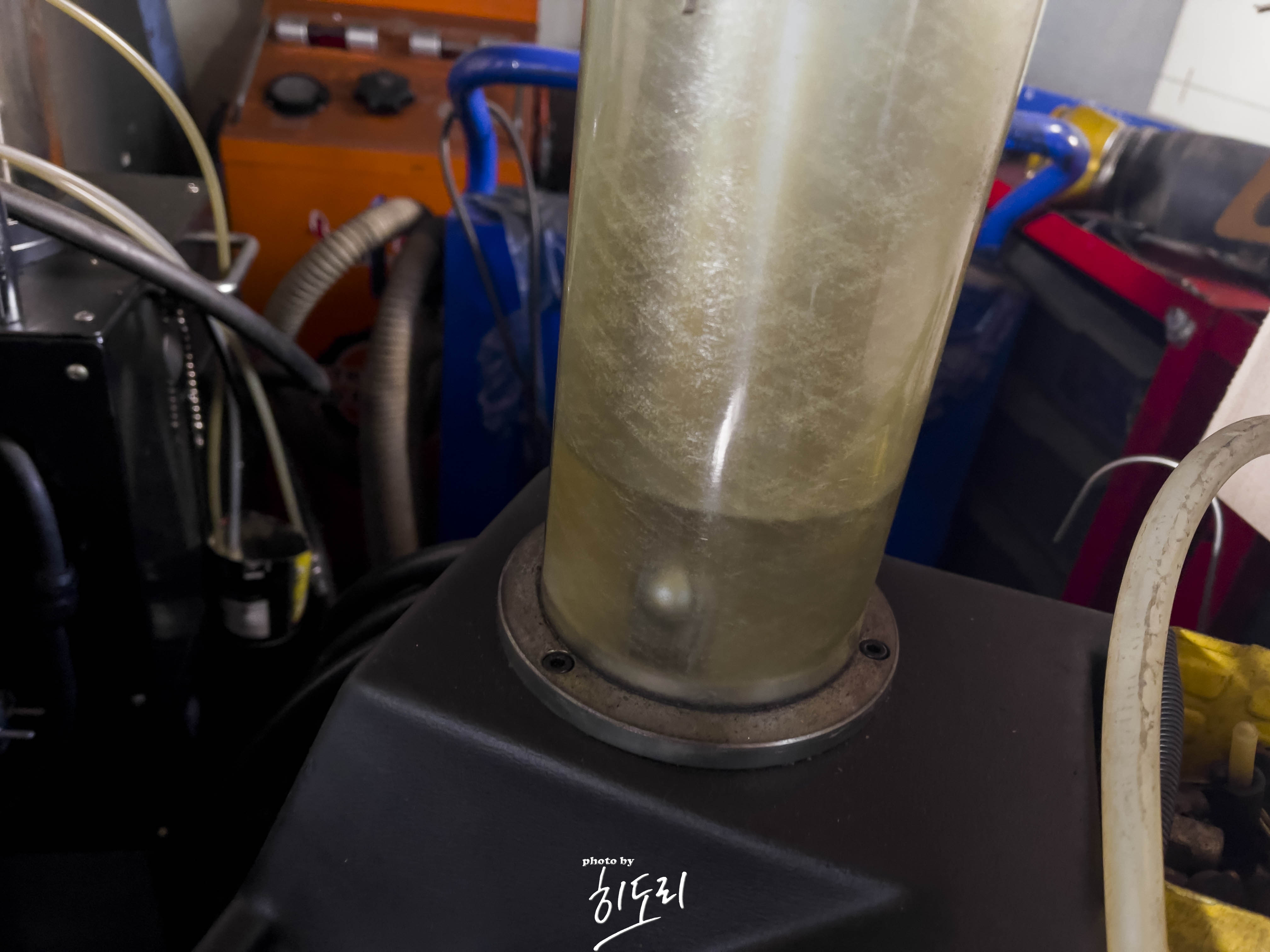 폐유를 1차적으로 자유낙하로 빼줍니다.