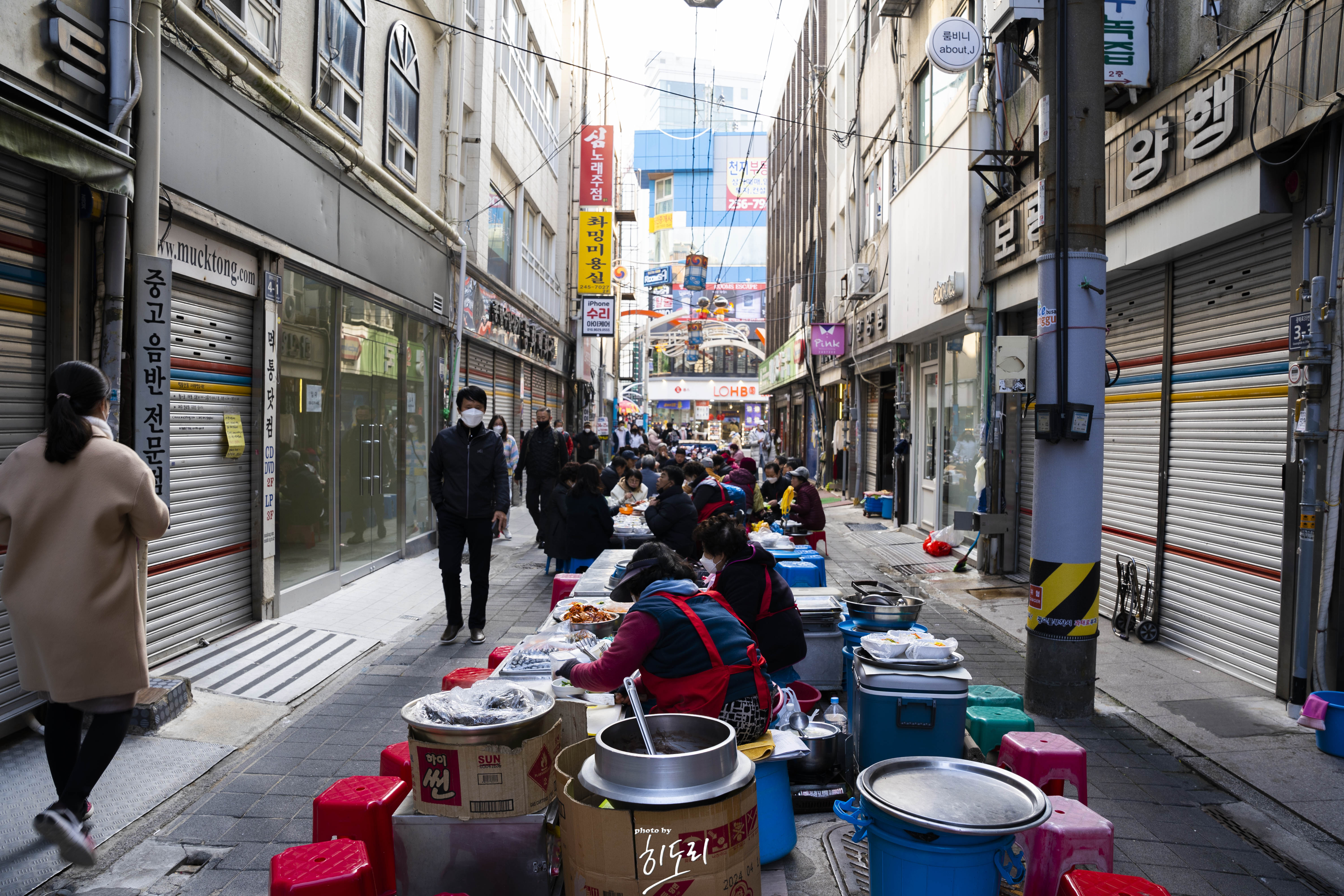 남포동의 씨앗호떡이 파는곳은 늘 많은 포장마차들과 관광객들도 바쁘게 돌아가며
