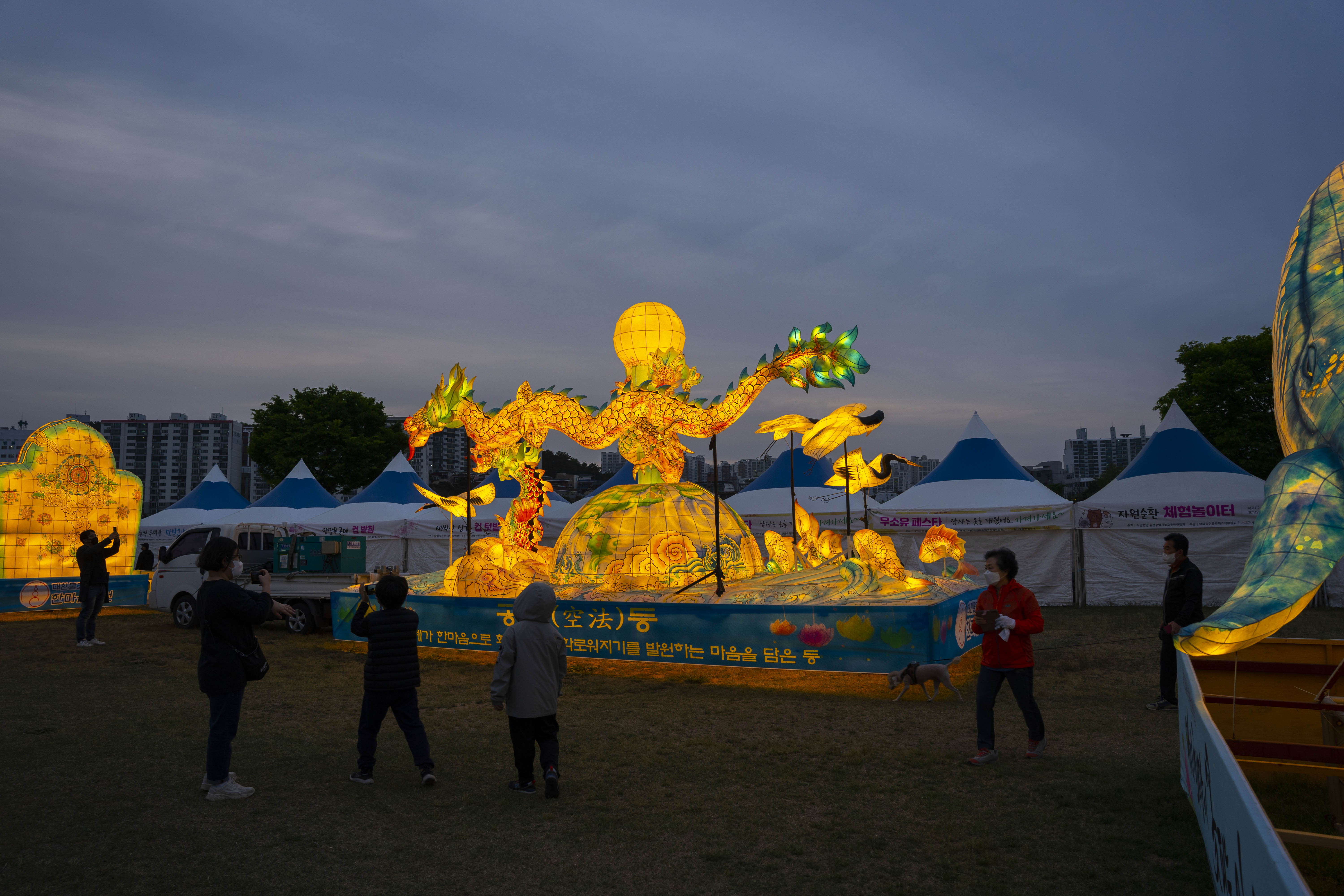 또 2022 태화강 연등축제! 라는 타이틀답게 하늘이 어두워지기 시작하며 많은 연등들이 하나 둘 켜지기 시작했는데
