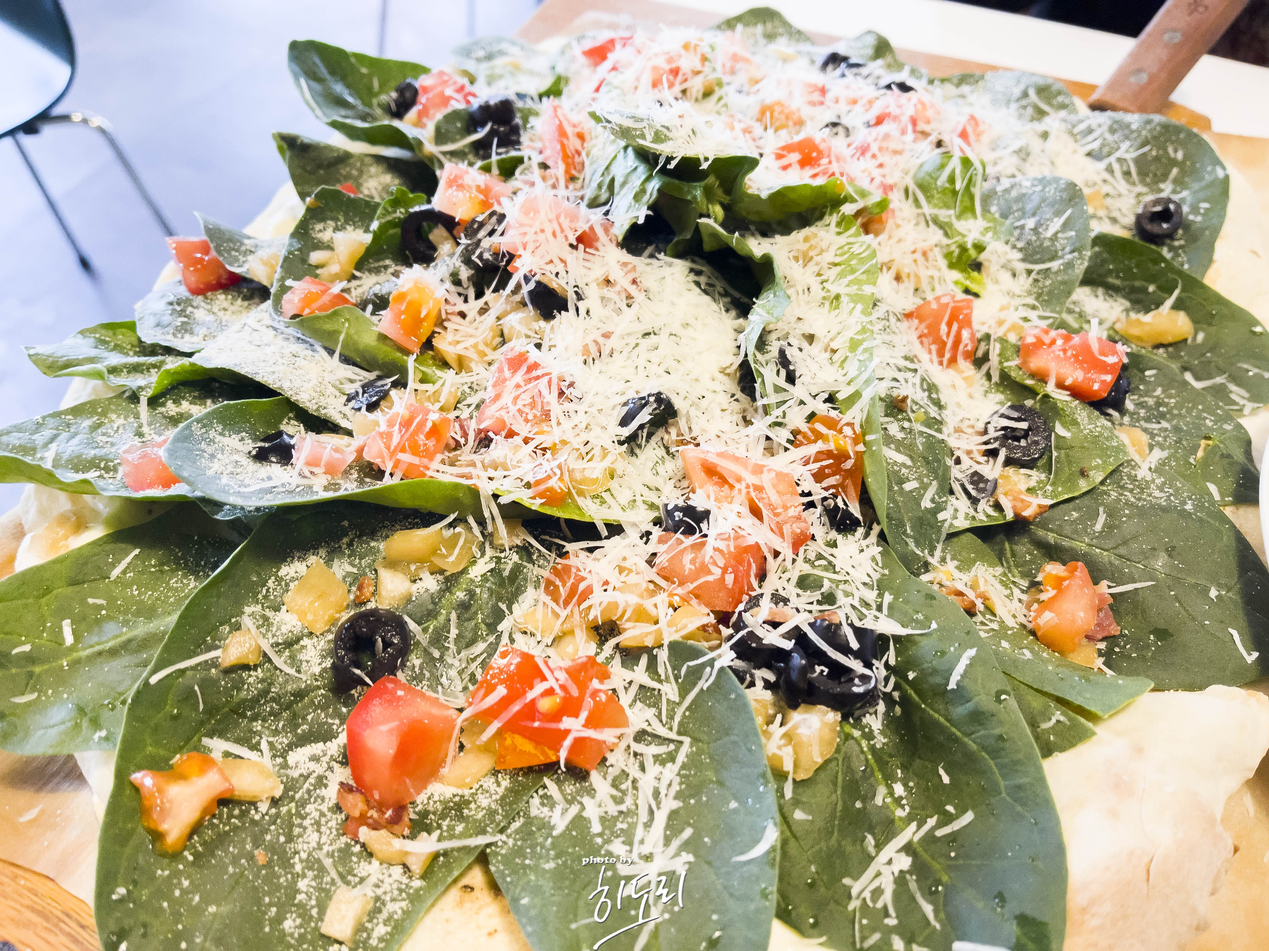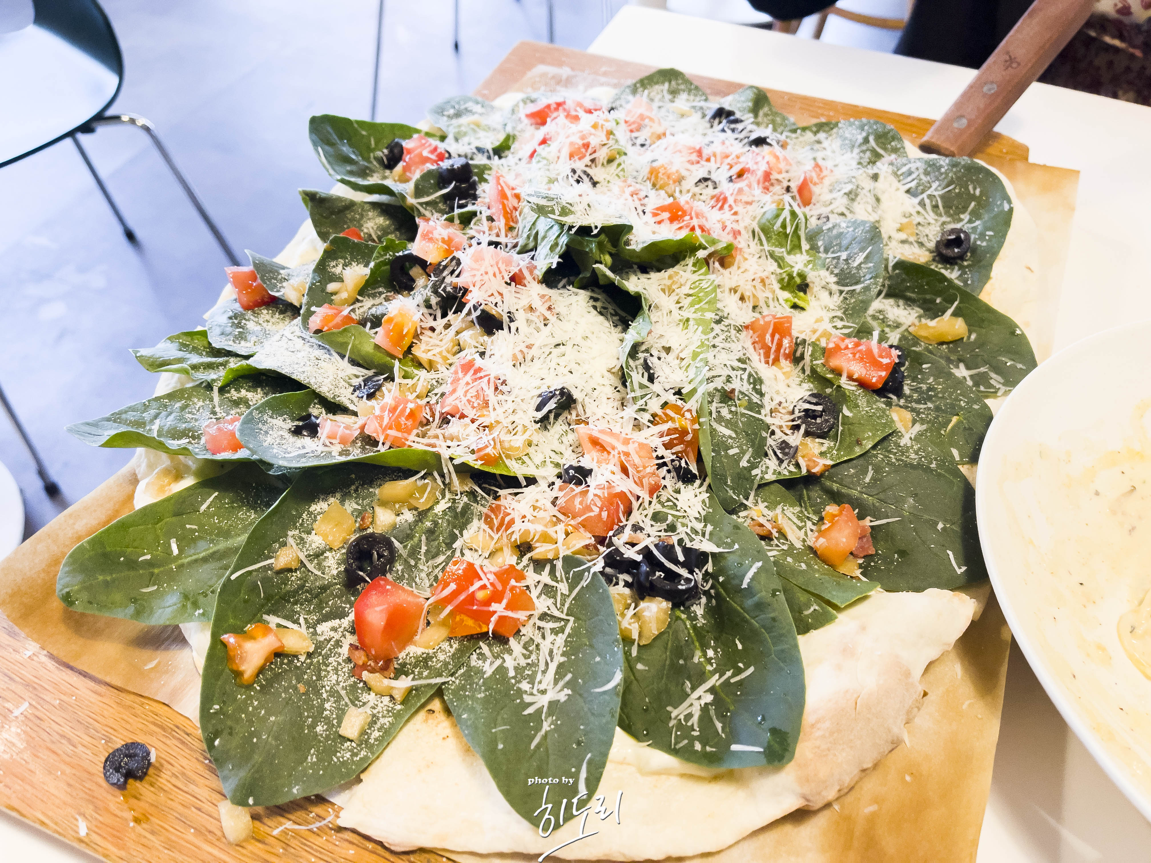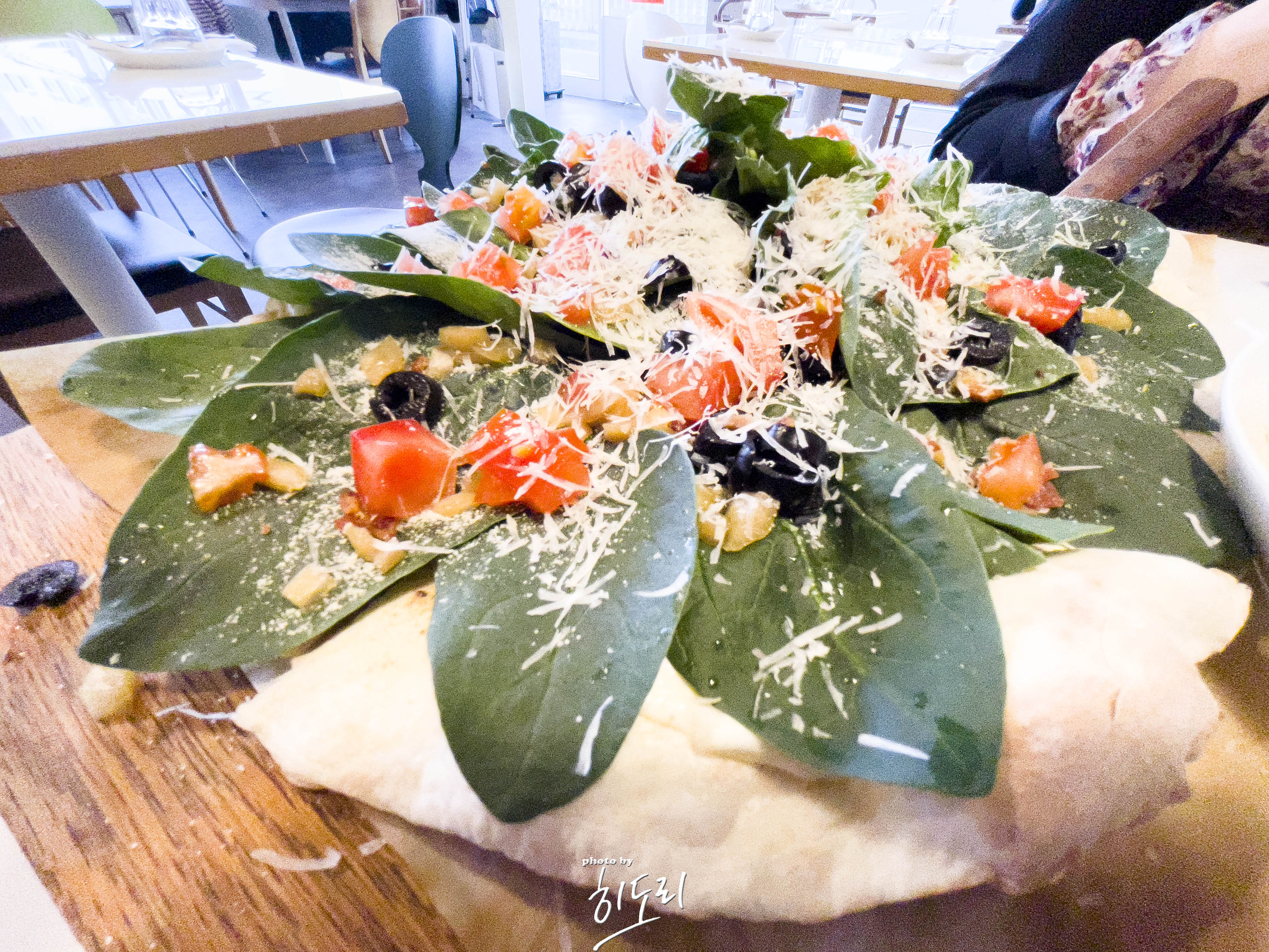 샐러드같은 베이스의 소스로 시금치와 올리브가 어울려 정말 맛있더군요.
