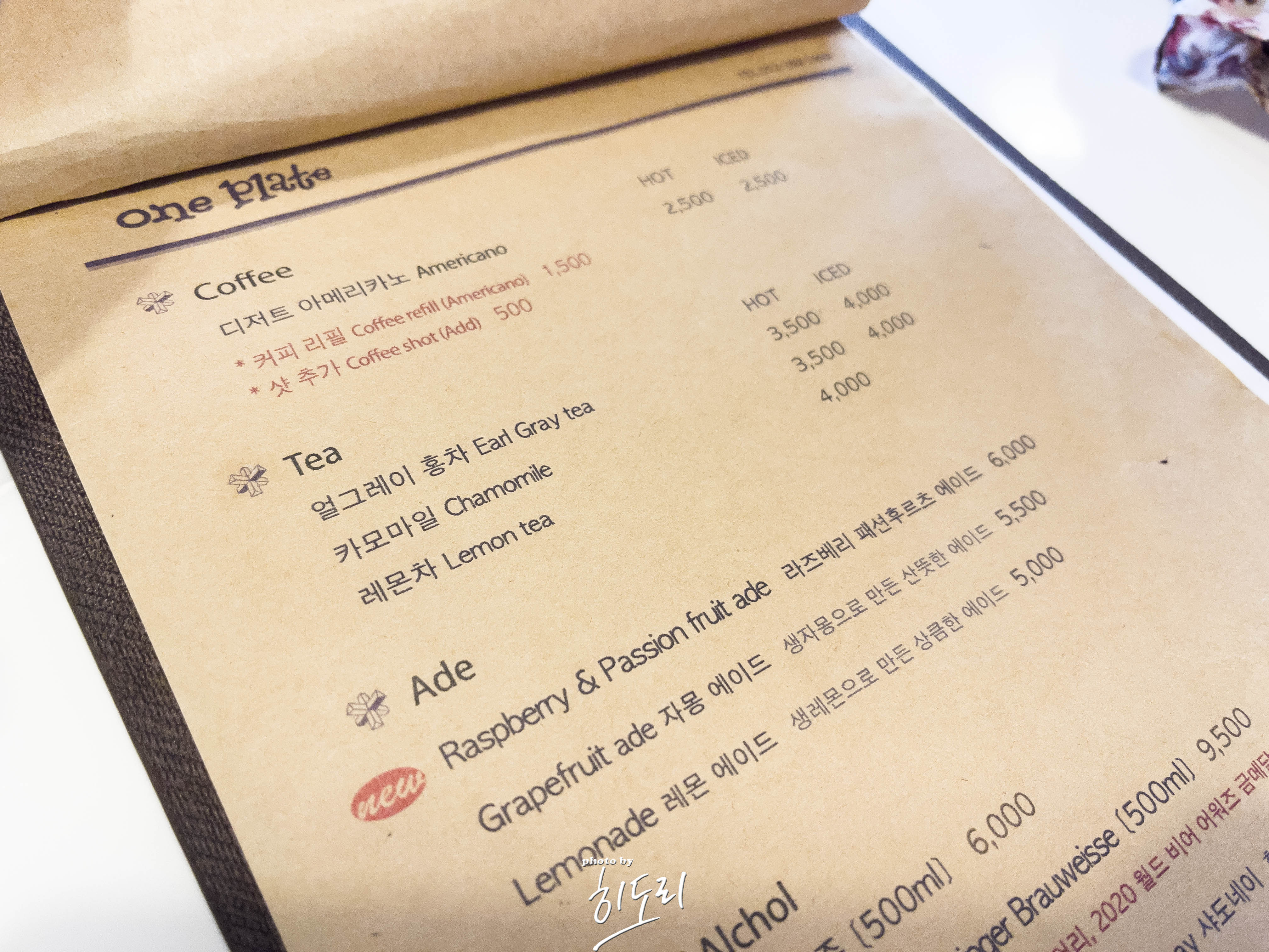 커피부터 홍차, 에이드 그리고 와인과 맥주등 알콜도 판매합니다.